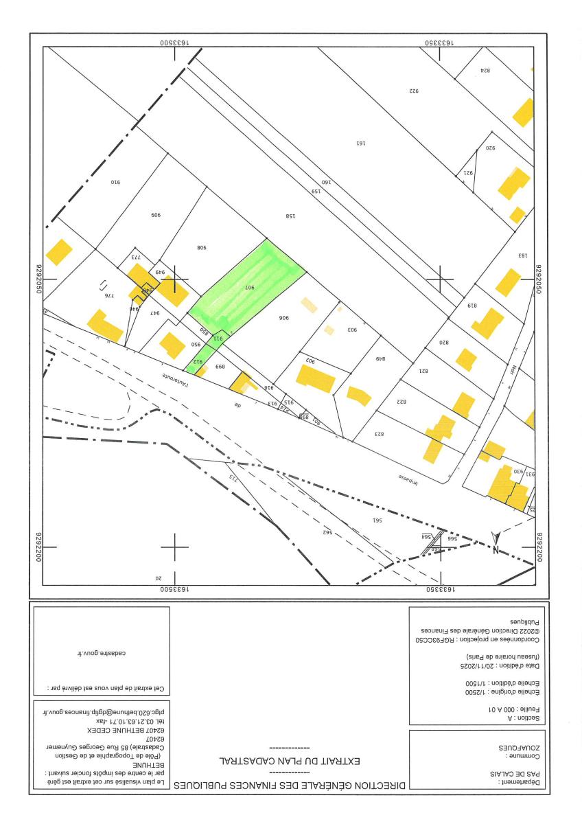 Prix : 64 320,00 €Zouafques62890Belle parcelle de terrain à bâtir avec l'arrière orienté sud-ouest en offrant une surface d'environ 1861m2. Façade utile environ 28 à 29m, terrain...Réf. : 62100-3668Voir le détail -