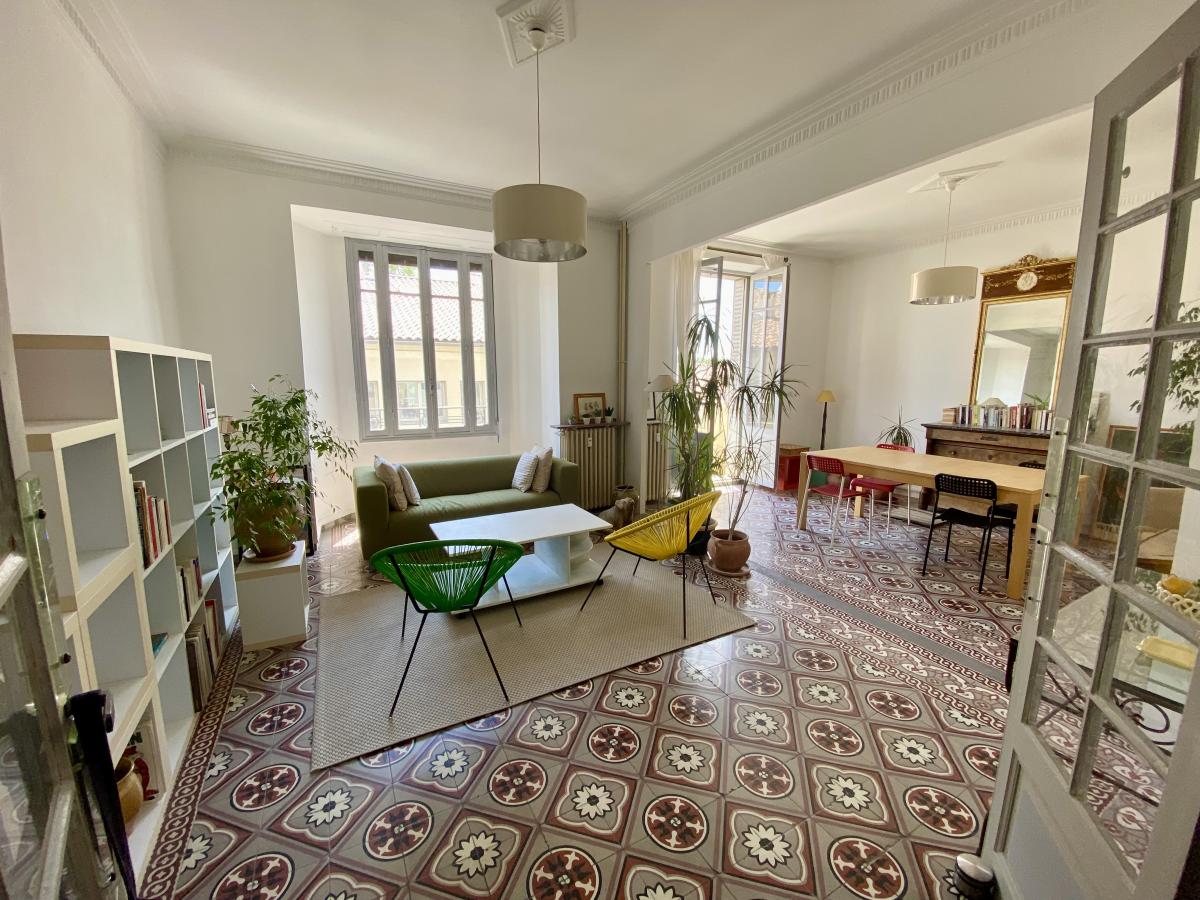 AVIGNON intra-muros, beau T5 avec balcon, chambre de bonne, cave et parking et terrasse collectifs