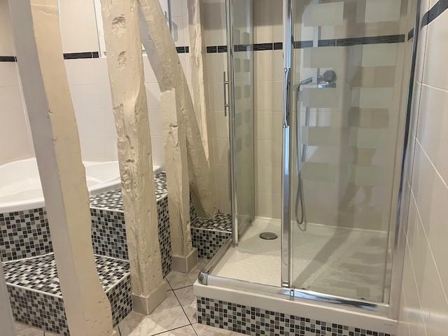 Magnifique appartement Type 5 de 124 m², entièrement rénové sur 3 niveaux, comprenant: quatre chambres, une salle d'eau avec WC, une salle de bains avec douche et baignoire d'angle, un WC séparé, un salon/séjour, une cuisine ouverte équipée et aménagée.