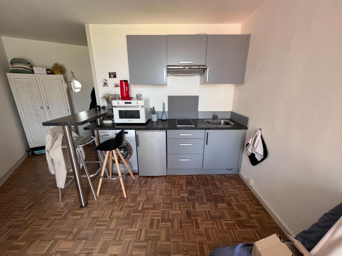 STUDIO RESIDENCE DE FRANCE, au 2ème étage étage, vue mer, comprenant entrée, pièce principale, coin cuisine aménagée et équipée (four, plaques, hotte, micro-onde, lave-linge), salle de douche.