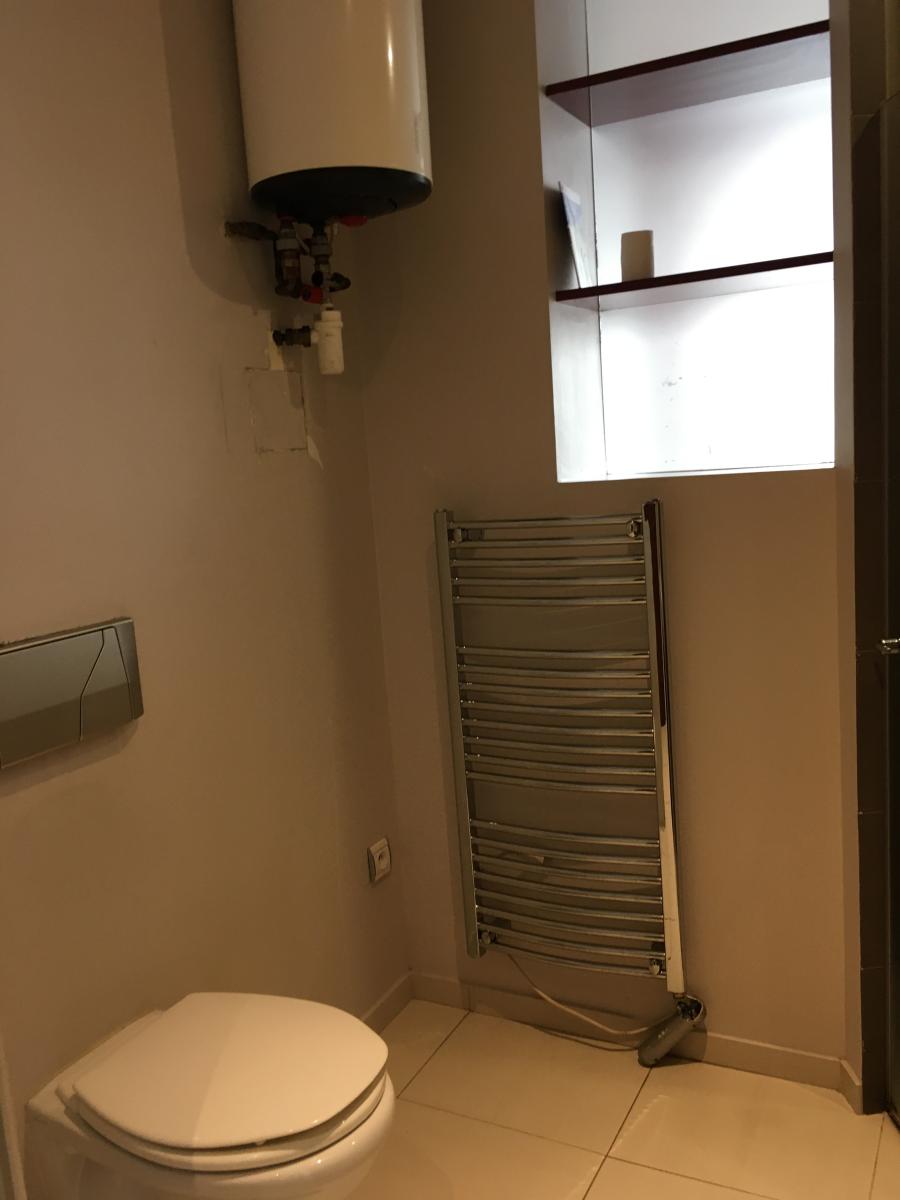 réfrigérateur, plaque vitrocéramique deux feux,hotte, four micro-onde), salle d’eau avec WC.