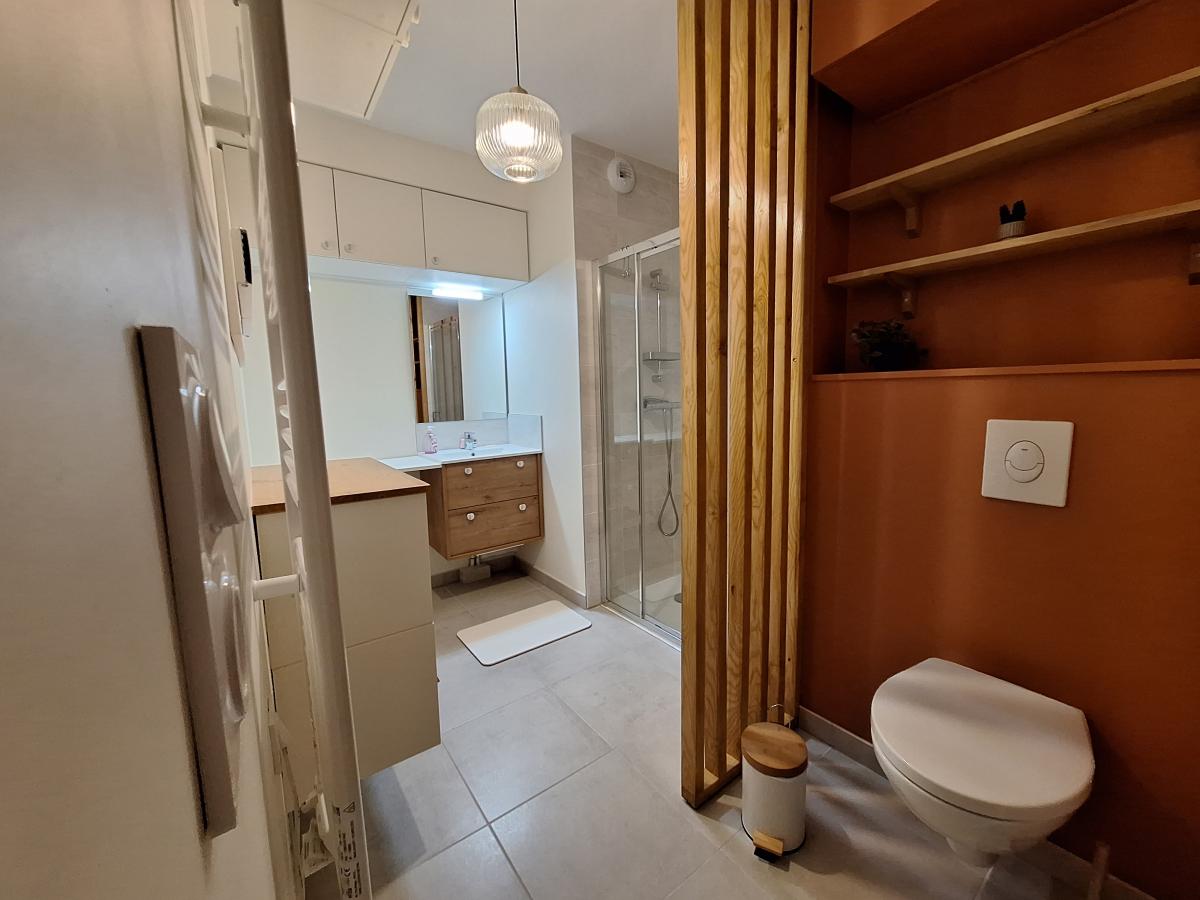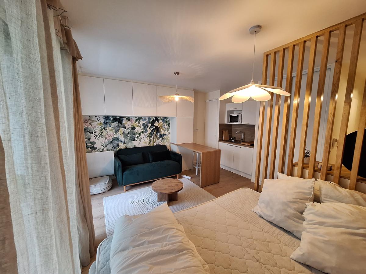 L'appartement se compose d'une entrée, un coin salon avec placards offrant l'accès sur un balcon, un coin chambre, une cuisine et une salle d'eau.