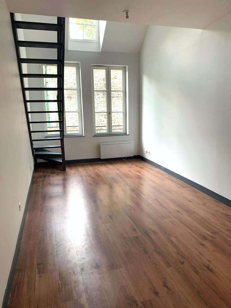 Bel appartement de type F2 en duplex de 40 m² environ situé rue des Fossés Louis VIII à ROUEN, au premier étage de l'immeuble composé de: