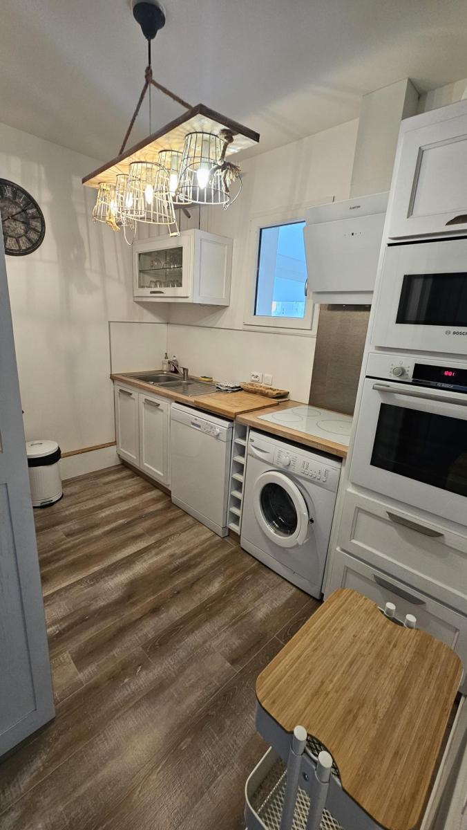 Séjour salon, dégagement, cuisine équipée, salle d'eau, WC, chambre.