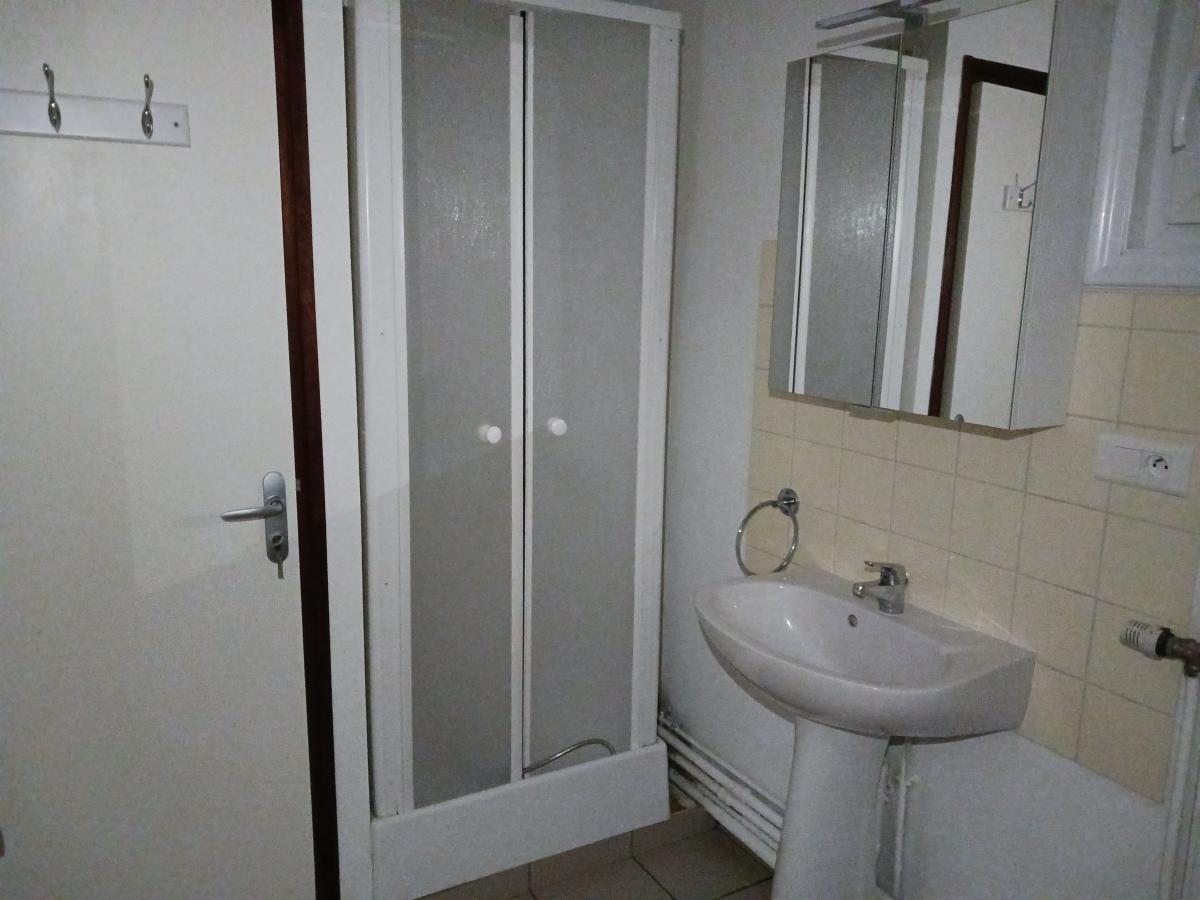 A louer appartement T2, de 53.70 m², au rez- de-chaussée d'un immeuble, comprenant entrée, séjour avec coin cuisine, 1 chambre, 1 salle de bains avec douche et WC.