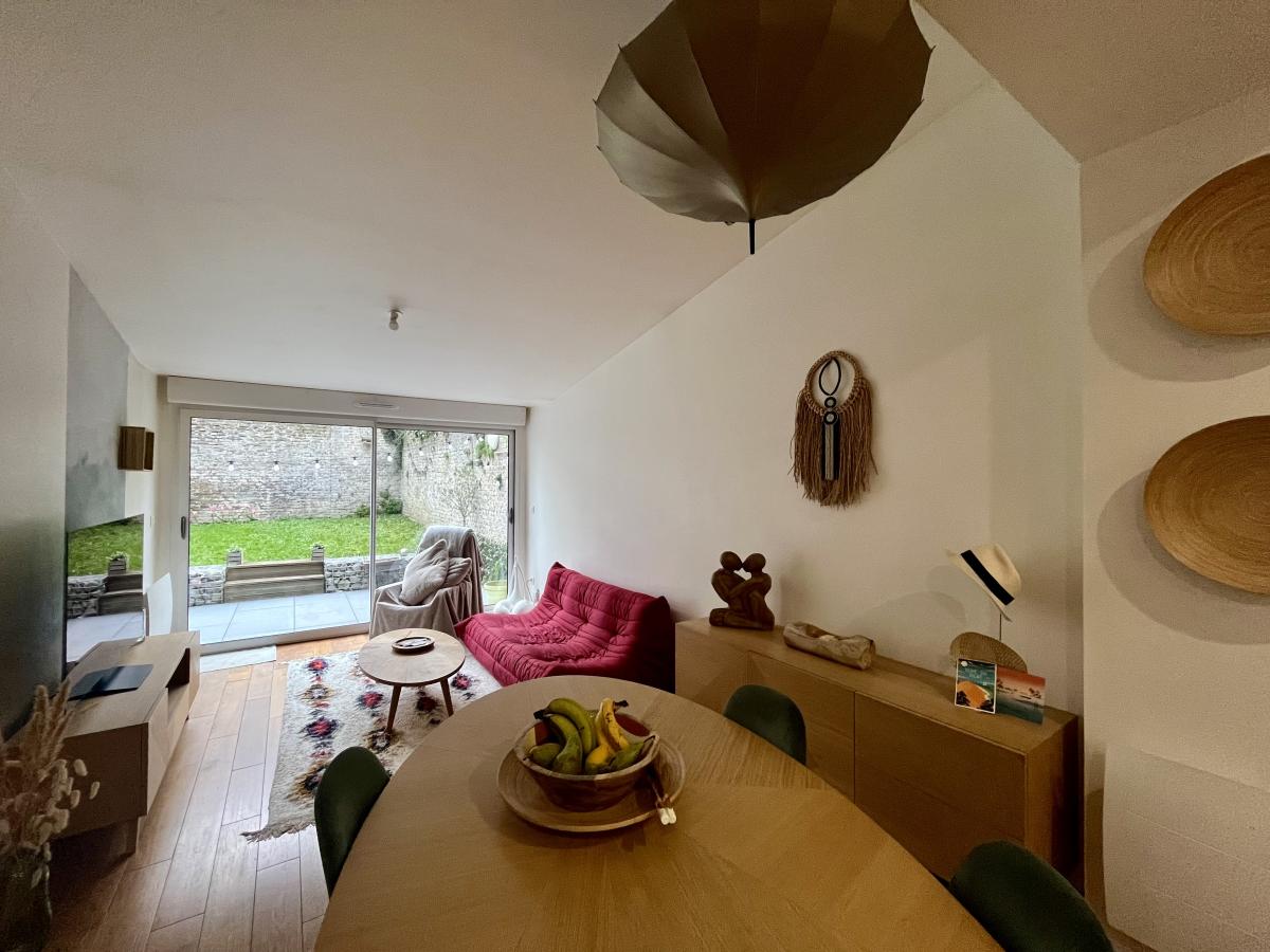 A louer appartement T3 situé quartier Henriville comprenant : séjour cuisine (hotte, plaque, four), deux chambres, une buanderie, une salle d'eau, wc et jardin.