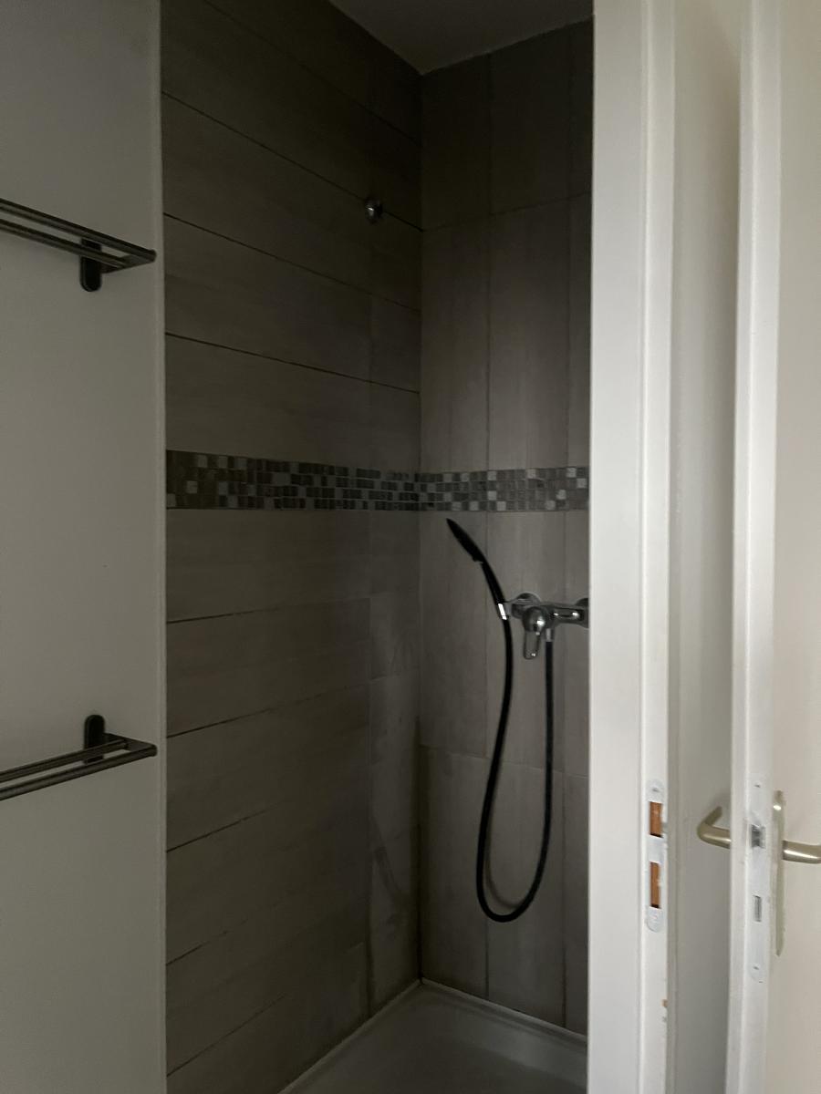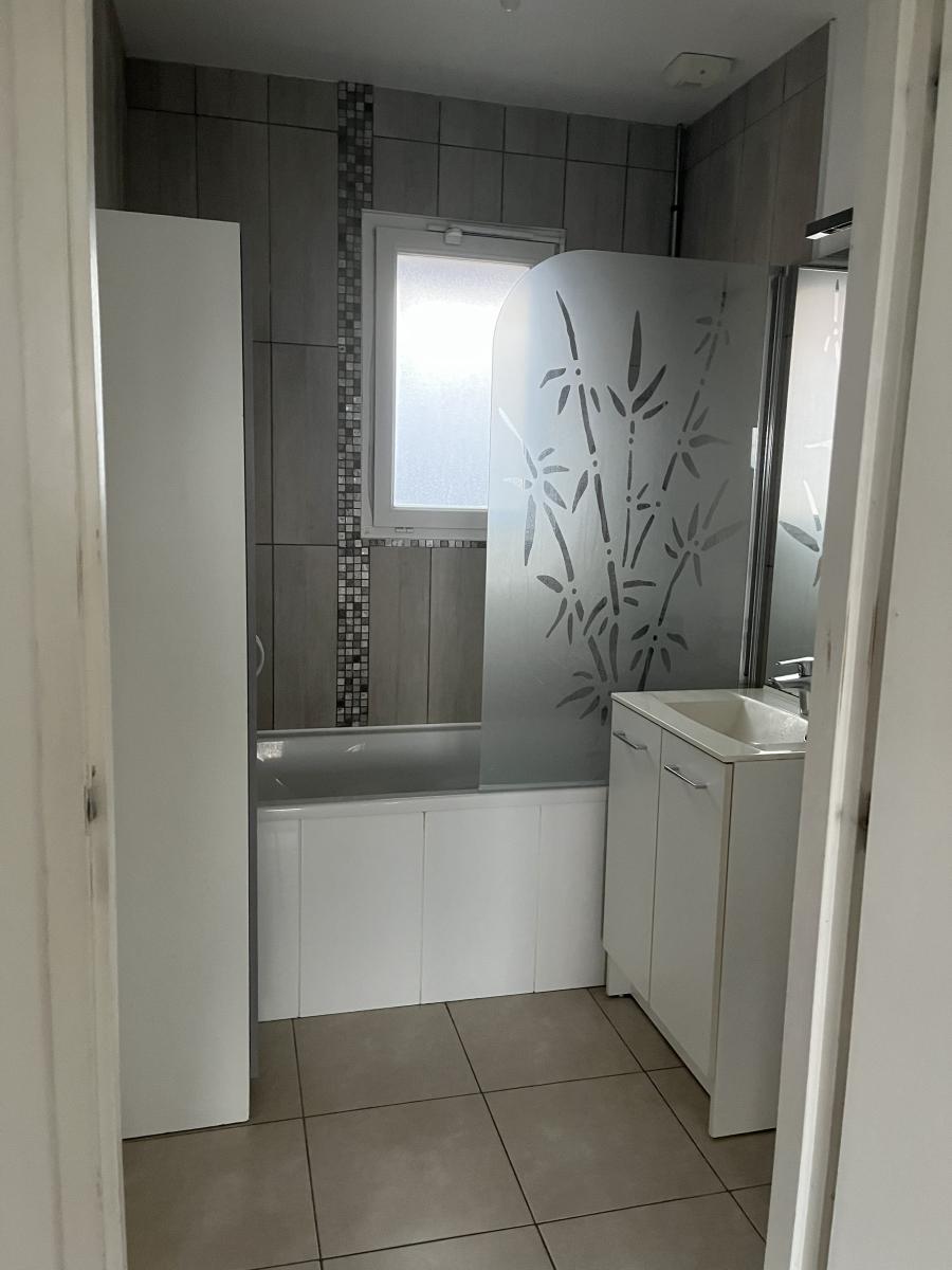 Hall, salle de séjour avec espace cuisine équipée, salle de bains, salle de douche, trois chambres, une place de stationnement, chauffage électrique, Libre de suite