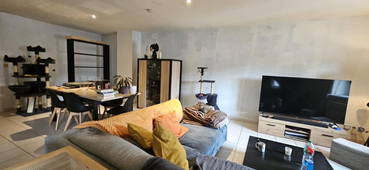 une grande pièce cuisine ouverte sur salon, 3 chambres, salle de bains WC.