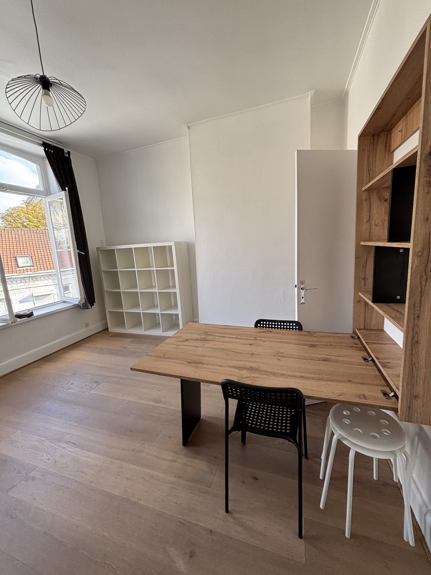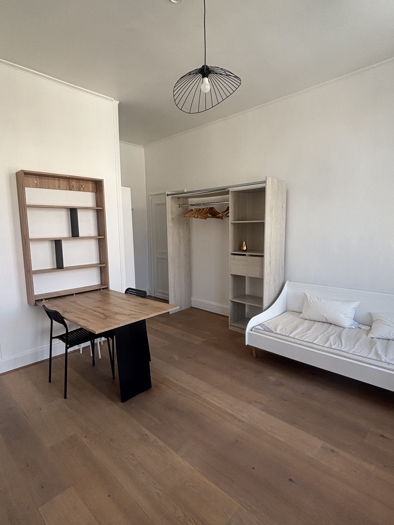 Studio meublé de 22m², séjour , table, chaises, Canapé lit, vaisselle à disposition, cuisine équipée d'une plaque de cuisson, micro-onde et d'un réfrigérateur, salle de bains avec WC, double vitrage posé courant avril.