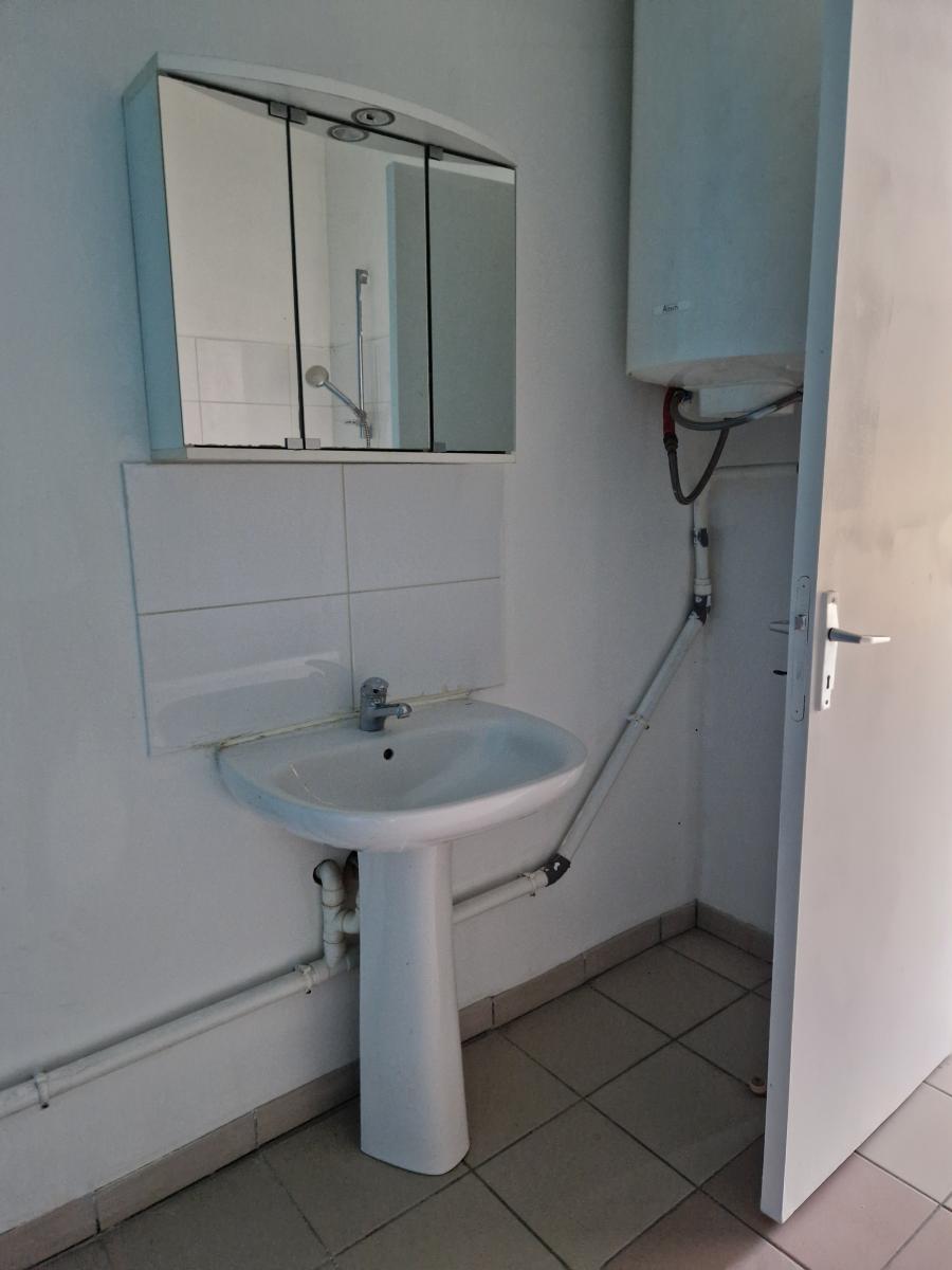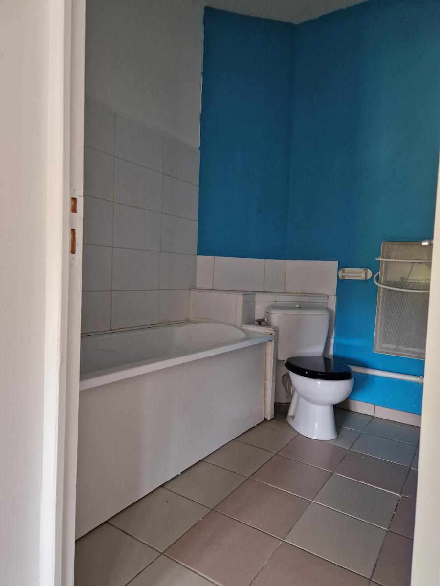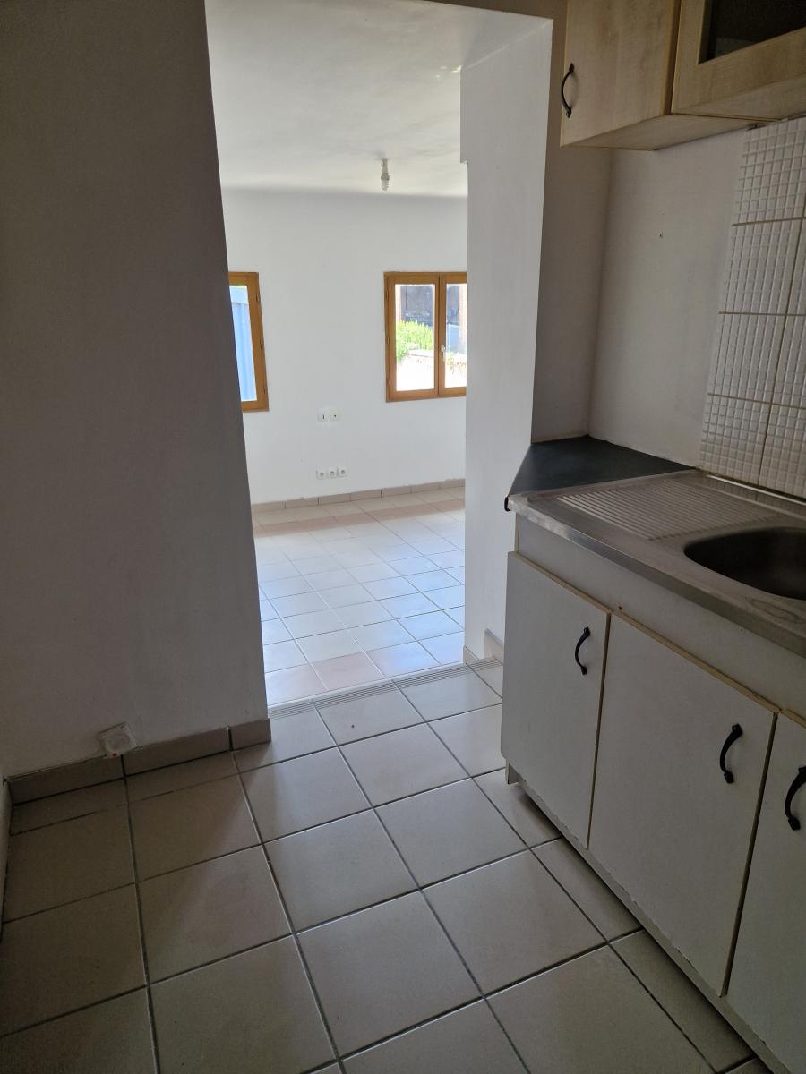 Entrée directement dans la cuisine aménagée, en suivant la pièce à vivre, salle de bains avec WC