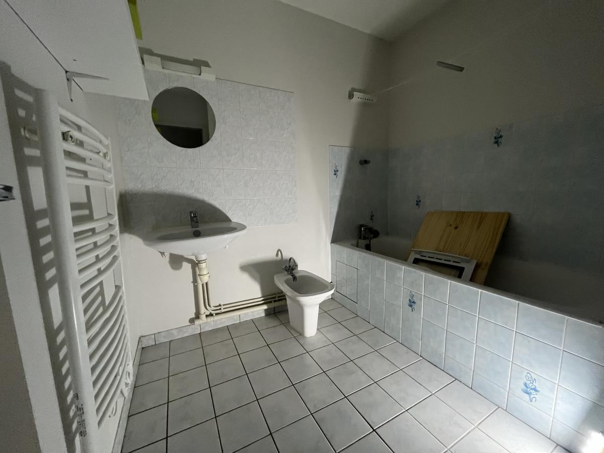 Entrée, dégagement, pièce principale avec armoire de rangement, dégagement, salle de bains avec placard, wc, cuisine .