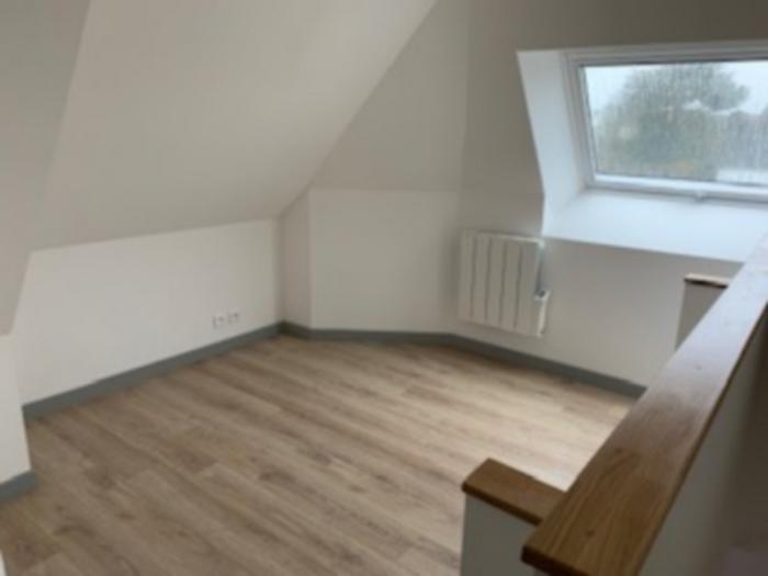 Il offre une entrée, cuisine aménagée, ouverte sur un séjour. en étage une chambre mansardée, salle d'eau avec toilettes.