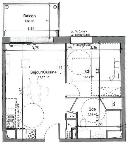2 pièces – 39,81 m²