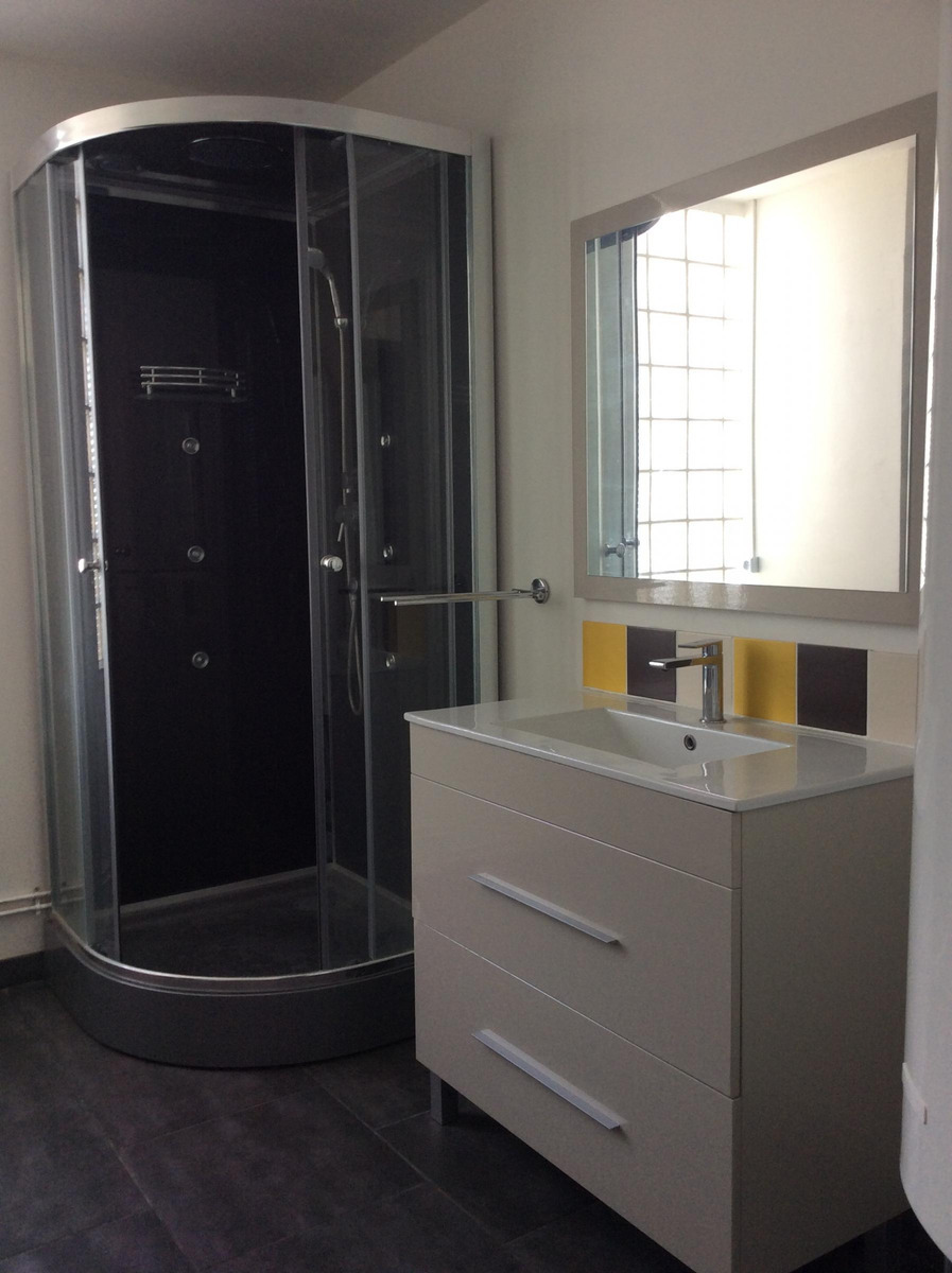 Vous aurez par la suite le coin nuit avec la chambre et enfin l'accès à la grande salle d'eau très lumineuse et son toilette indépendant.