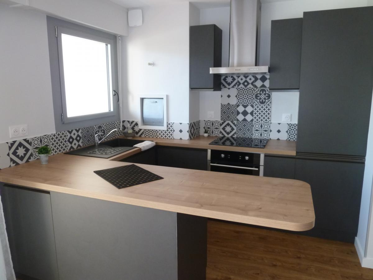 - Entrée, séjour avec cuisine équipée ouverte (neuve) de 27m² (hotte, plaques induction, four pyrolyse, lave-vaisselle, combi réfrigérateur et congélateur), cellier, wc, salle de bains, chambre de 10m².