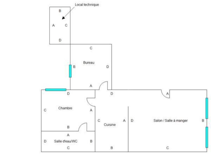 Un appartement de 53 m² situé au rez-de-chaussée de l'immeuble comprenant :