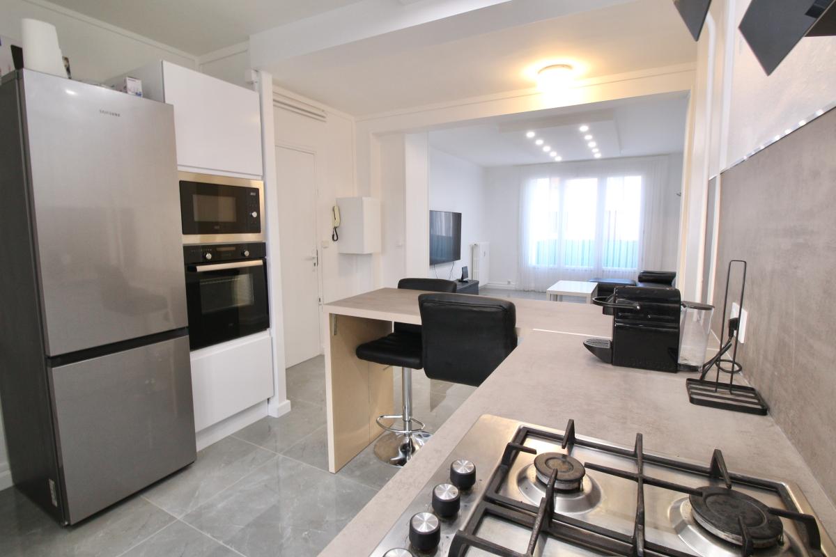 Bel appartement F3 meublé, sis rue de Falaise à CAEN, comprenant séjour avec cuisine, séchoir, dégagement, deux chambres, salle d'eau et WC. Cave.