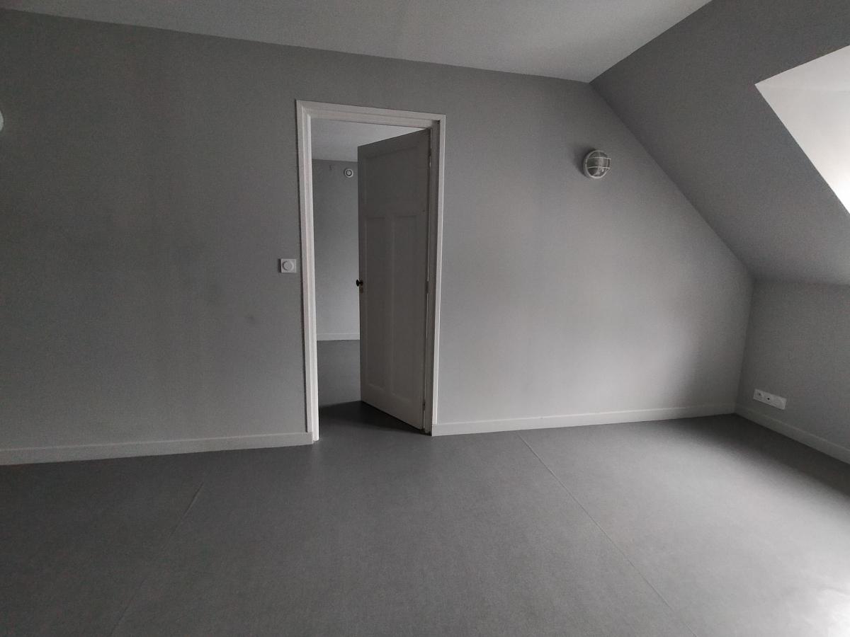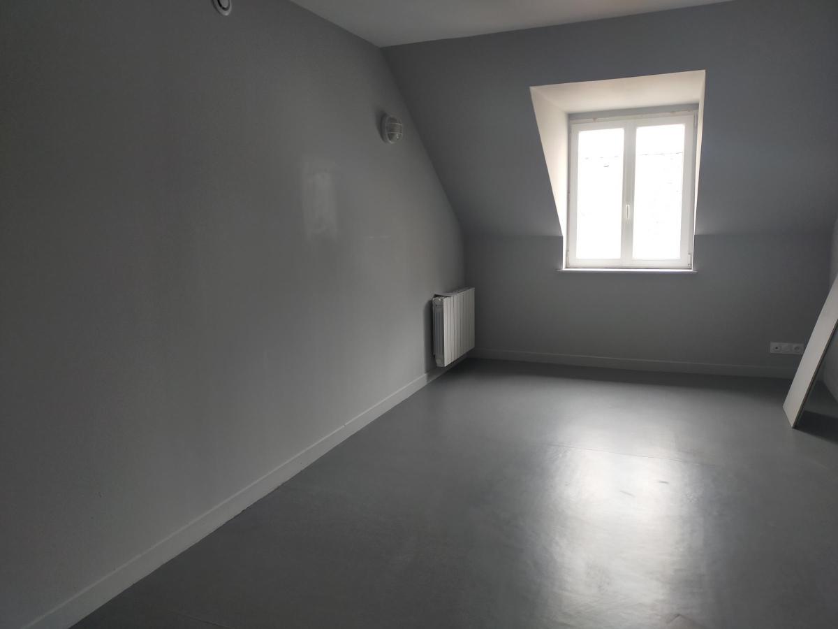 A LOUER LOUDEAC CENTRE VILLE , au 2eme étage dans un petit immeuble de 4 lors seulement, Appartement, de 59m² T2bis comprenant une pièce à vivre avec cuisine aménagée et équipée (four, plaque vitro, frigo, hotte) ouverte sur le séjour