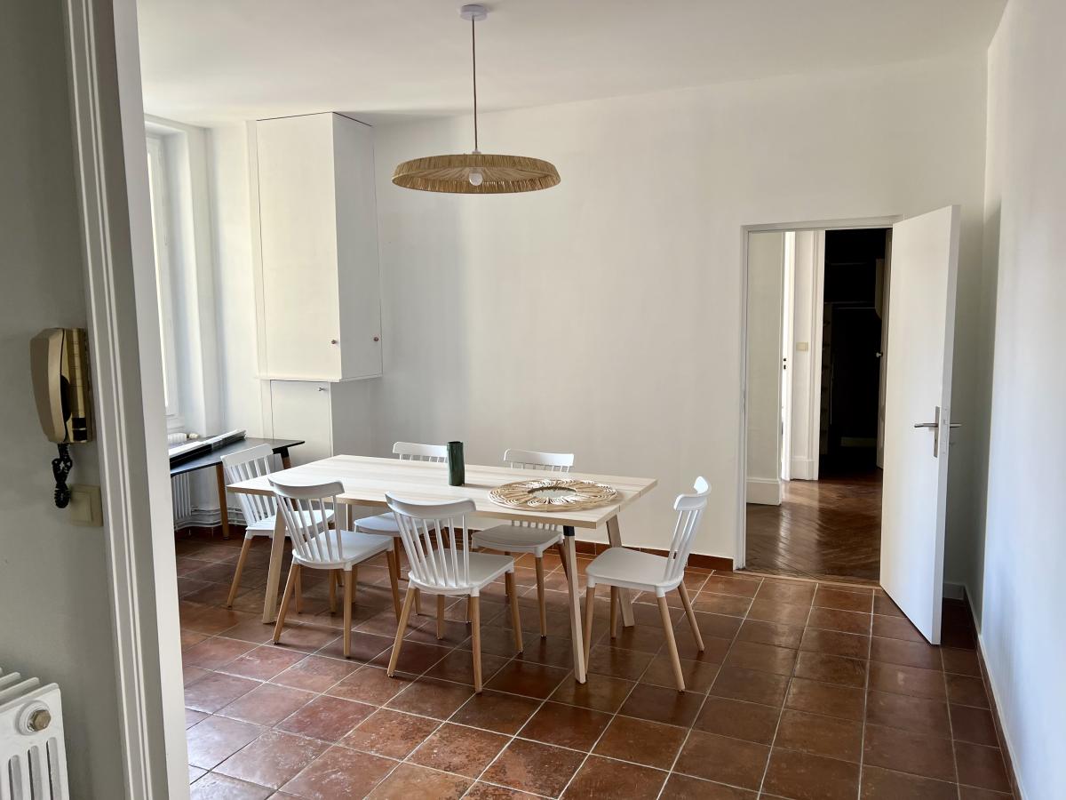 Rue de créqui, à 4 min du métro Place Guichard et 10 min à pied de la Part Dieu, au 4ème étage avec ascenseur, superbe appartement meublée d'environ 113 m² comprenant: un hall d'entrée, un salon, une salle à manger ouverte sur une cuisine meublée et équipée, trois chambres, une grande salle d'eau.