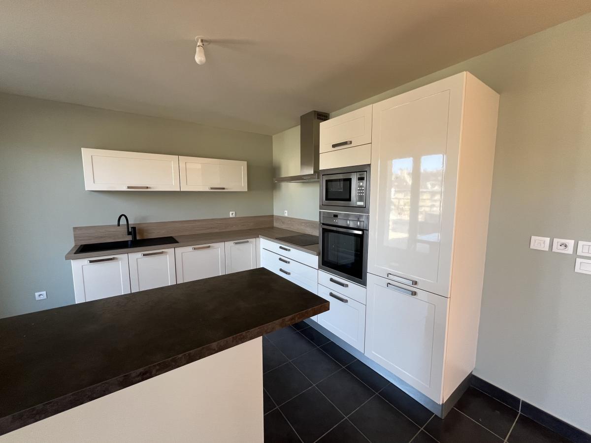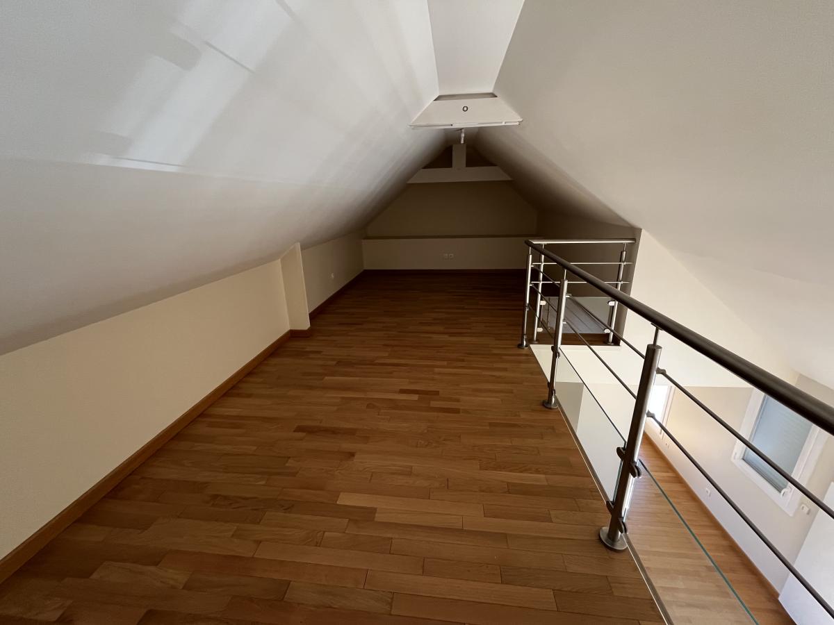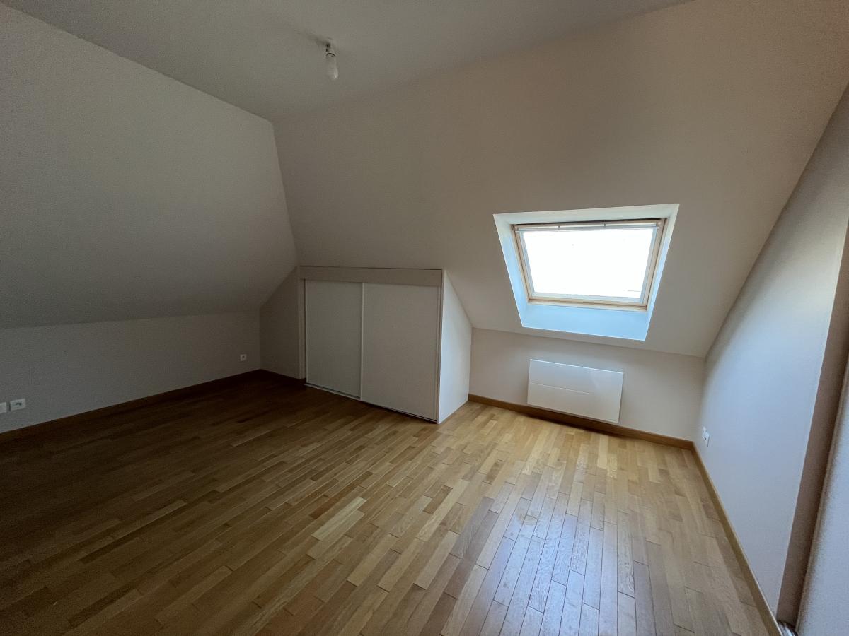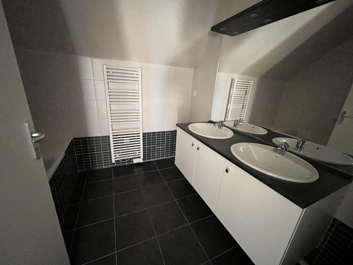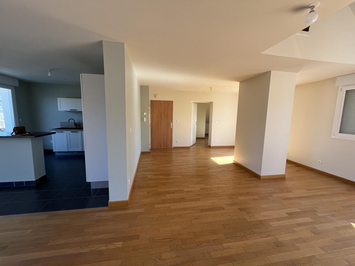 Appartement F5, parfait état, Caen Centre proche hippodrome, dernier étage avec ascenseur, deux terrasses, comprenant séjour, cuisine aménagée et équipée ouverte, trois chambres, un bureau en mezzanine, salle de bains.