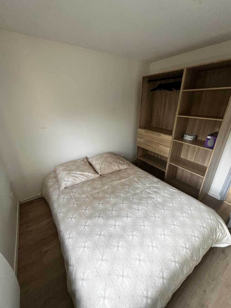 Entrée sur la pièce de vie avec coin cuisine, salle de bain avec douche, wc séparé et une chambre.