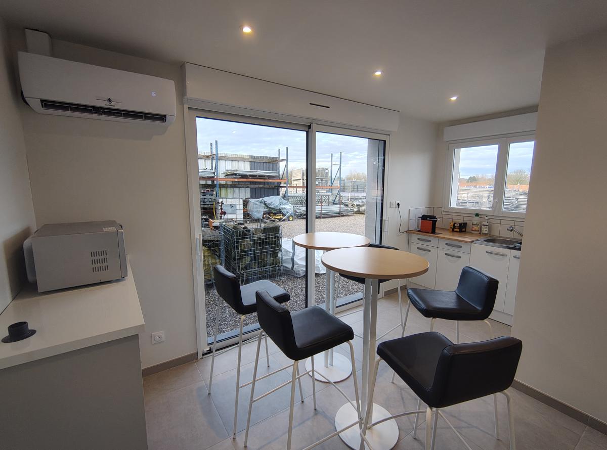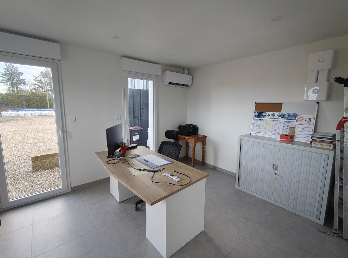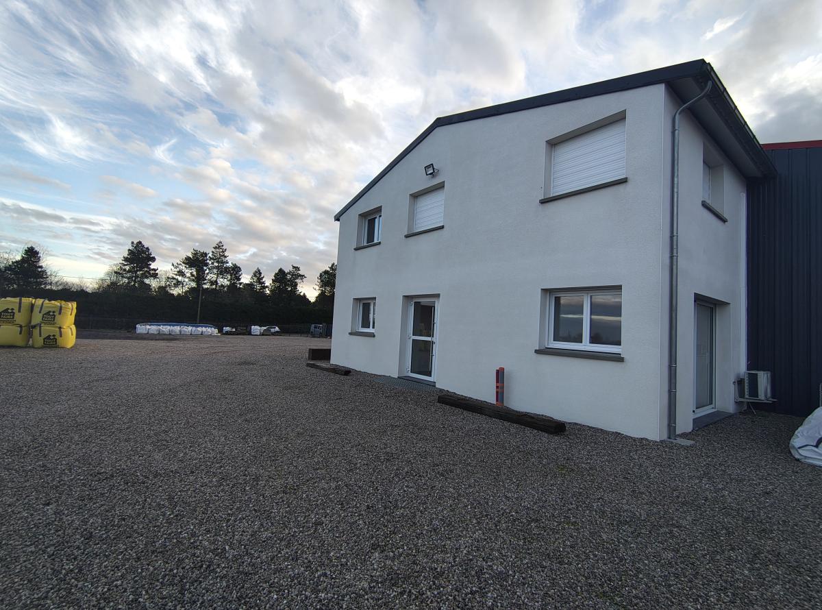 - une partie bureaux d'environ 87m²comprenant hall, bureau, cuisine aménagée, douche et wc. A l'étage, salle de réunion.