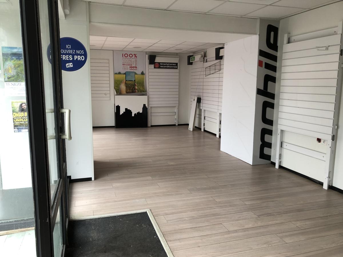 Magasin d'environ 70 m2 (composé de trois pièces), WC, cellier, petite cour privative.