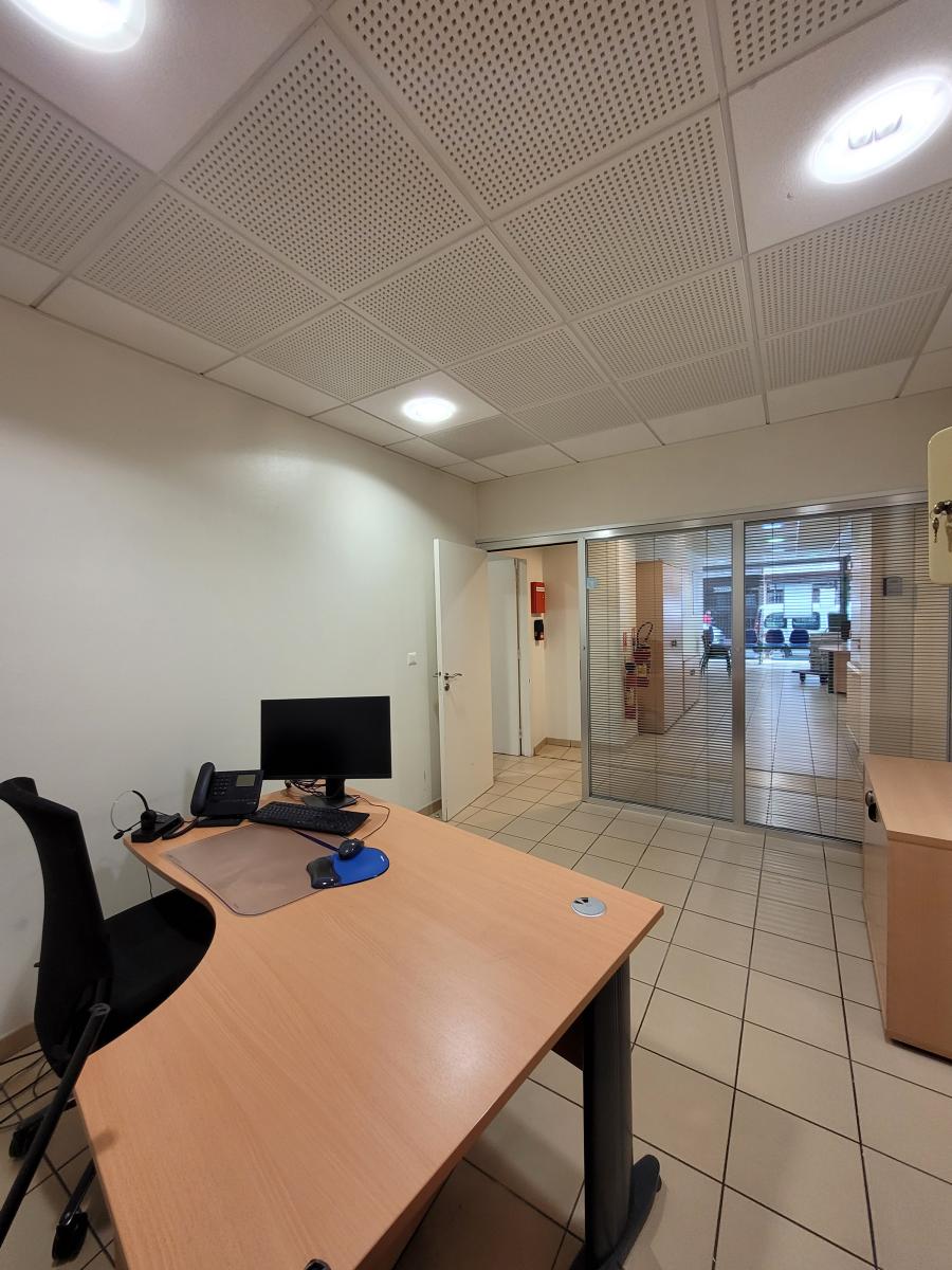 A louer un local commercial en centre ville d'Amiens comprenant un accès clientèle PMR, une pièce sur rue avec vitrine, un bureau fermé vitré et une pièce en fond de local, wc