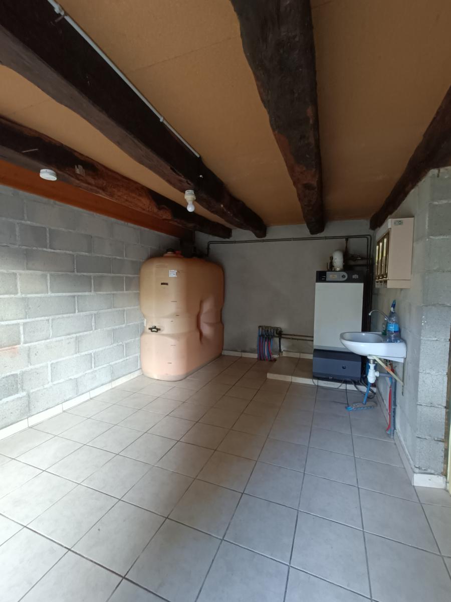 En campagne de Gomené maison mitoyenne d'un côté composée : d'une grande véranda, une pièce de vie séjour / salle à manger et cuisine aménagée (plaques gaz et hotte), une salle d'eau (meuble double vasque et douche), WC, une arrière-cuisine / buanderie (évier - placards hauts et congélateur) et une chaufferie.