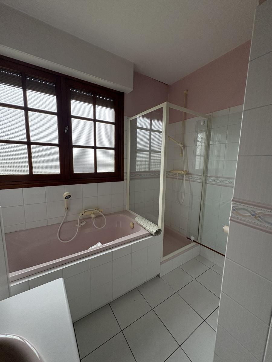 Comprenant au rez de chaussée : entrée, salon séjour avec cuisine équipé (four, plaque, lave vaisselle, micro-onde, frigo), salle de bain avec douche et baignoire, WC et 2 chambres