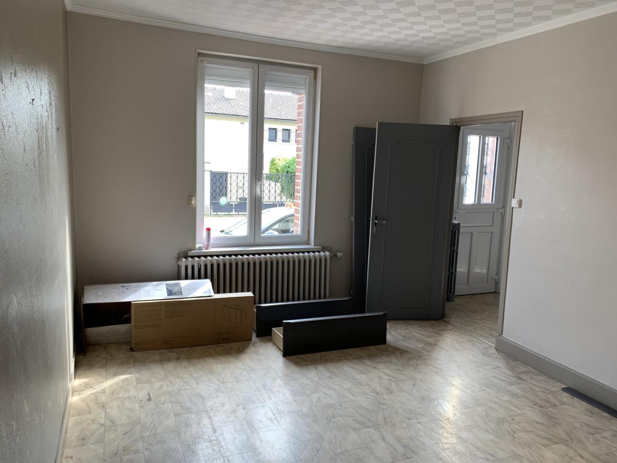 A louer sur la commune d'Oppy, une maison de type 4 de 104,84 m2 comprenant en rez de chaussée : un hall, un salon séjour, une cuisine, une buanderie, des WC. A l'étage : 3 chambres, un salle de bains des wc.