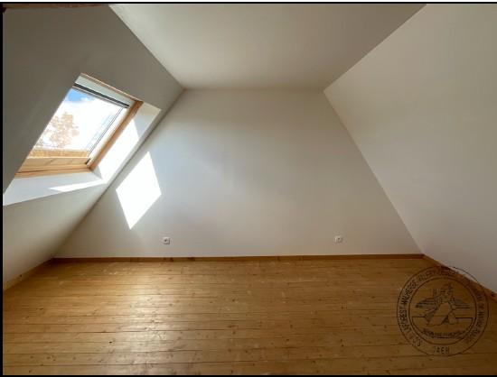 Maison mitoyenne d'environ 120 m² sise Chemin du Plain à JANVILLE, comprenant au RDC : entrée, wc, salle d'eau, pièce de vie d'environ 40m², au 1er étage : palier, wc, dégagement, espace bureau, deux chambres, sous les combles : dégagement, deux pièces d'environ 8 m² habitables (14 m² au sol). Chauffage par pompe à chaleur.
