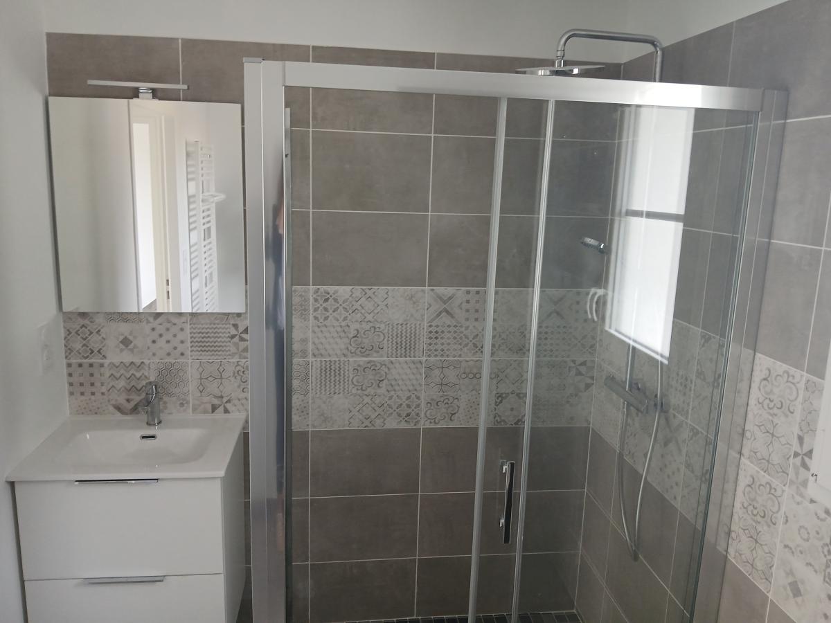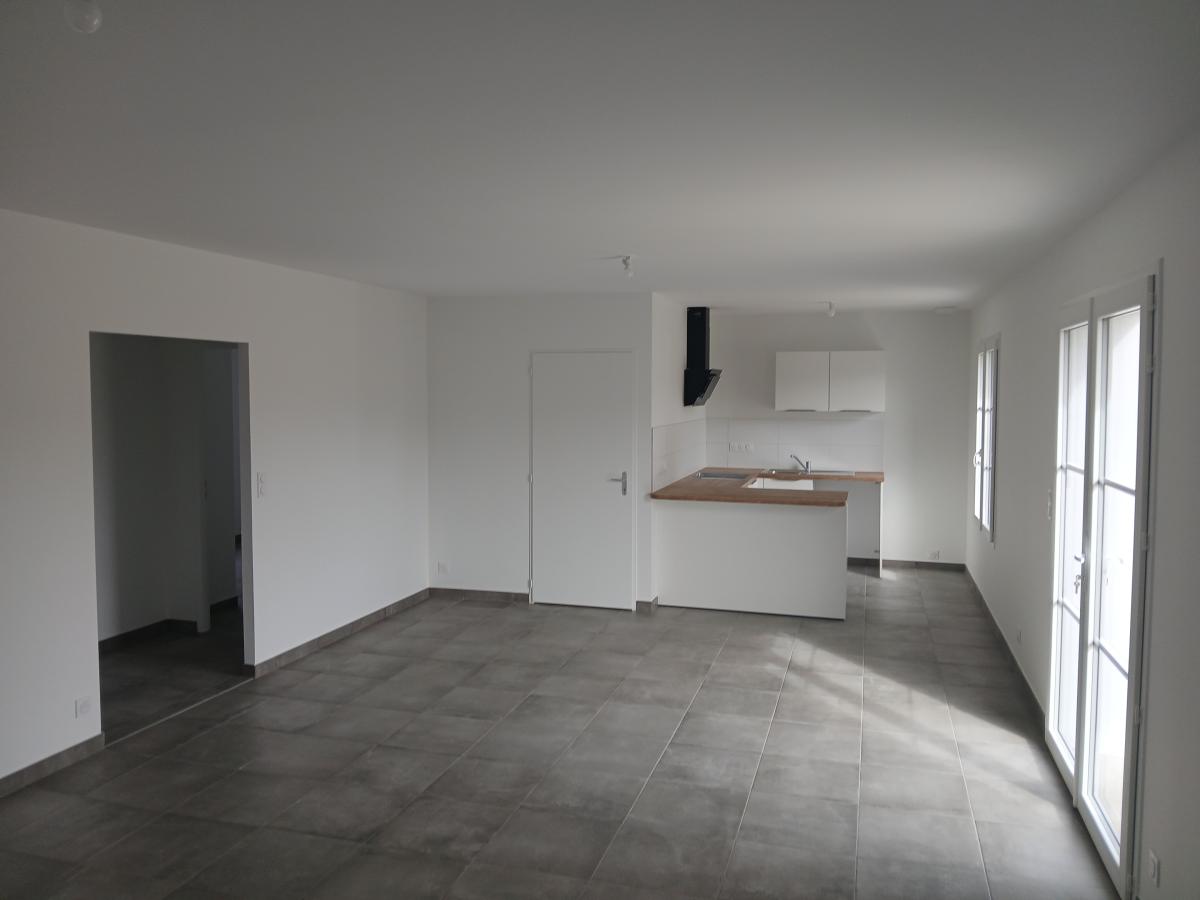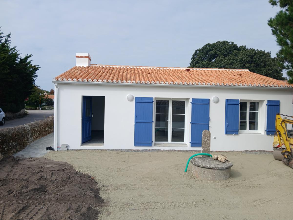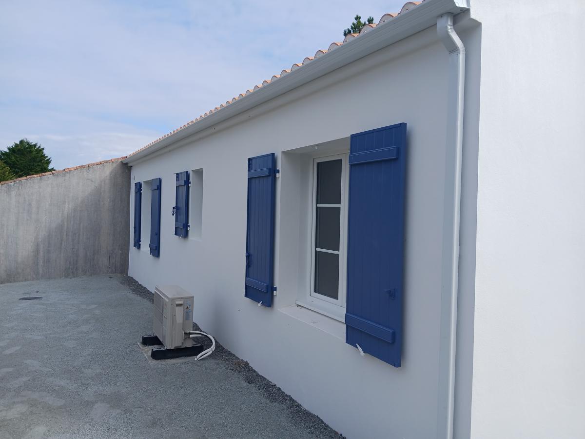 BARBATRE-proche plage - Maison neuve de plain pied comprenant: un séjour, cuisine aménagée et équipée (hotte, plaque à induction, frigo) deux chambres avec placard, salle d'eau et toilette. Terrain clos. Chauffage au sol. Libre mi-mars