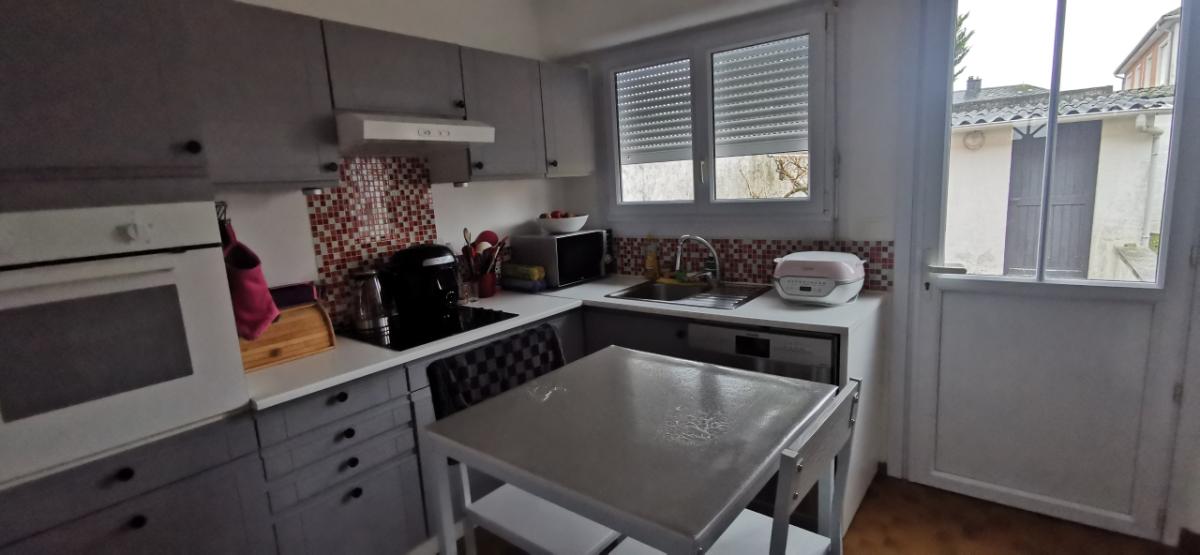 Au rez-de-chaussée : hall d'entrée avec placard, WC, salon séjour, cuisine aménagée et équipée ;