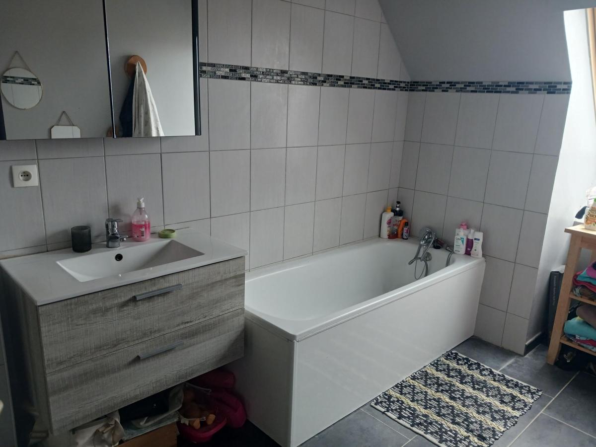 A louer à ST LAURENT BLANGY, maison de type 4, de 93m² comprenant au rez- de chaussée hall d'entrée avec placard de rangement, salon, séjour, cuisine équipée, WC, à l'étage, 3 chambres et salle de bains avec baignoire.