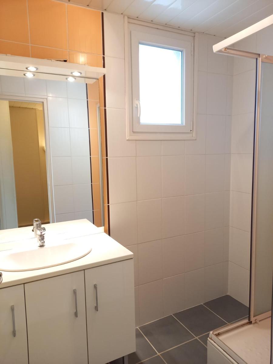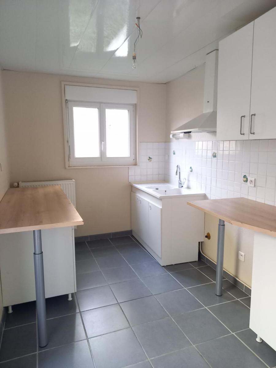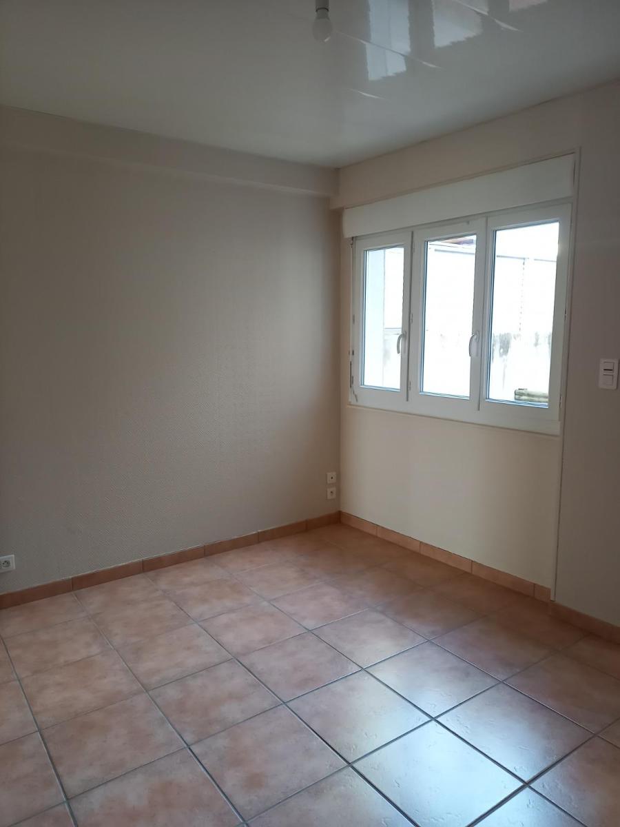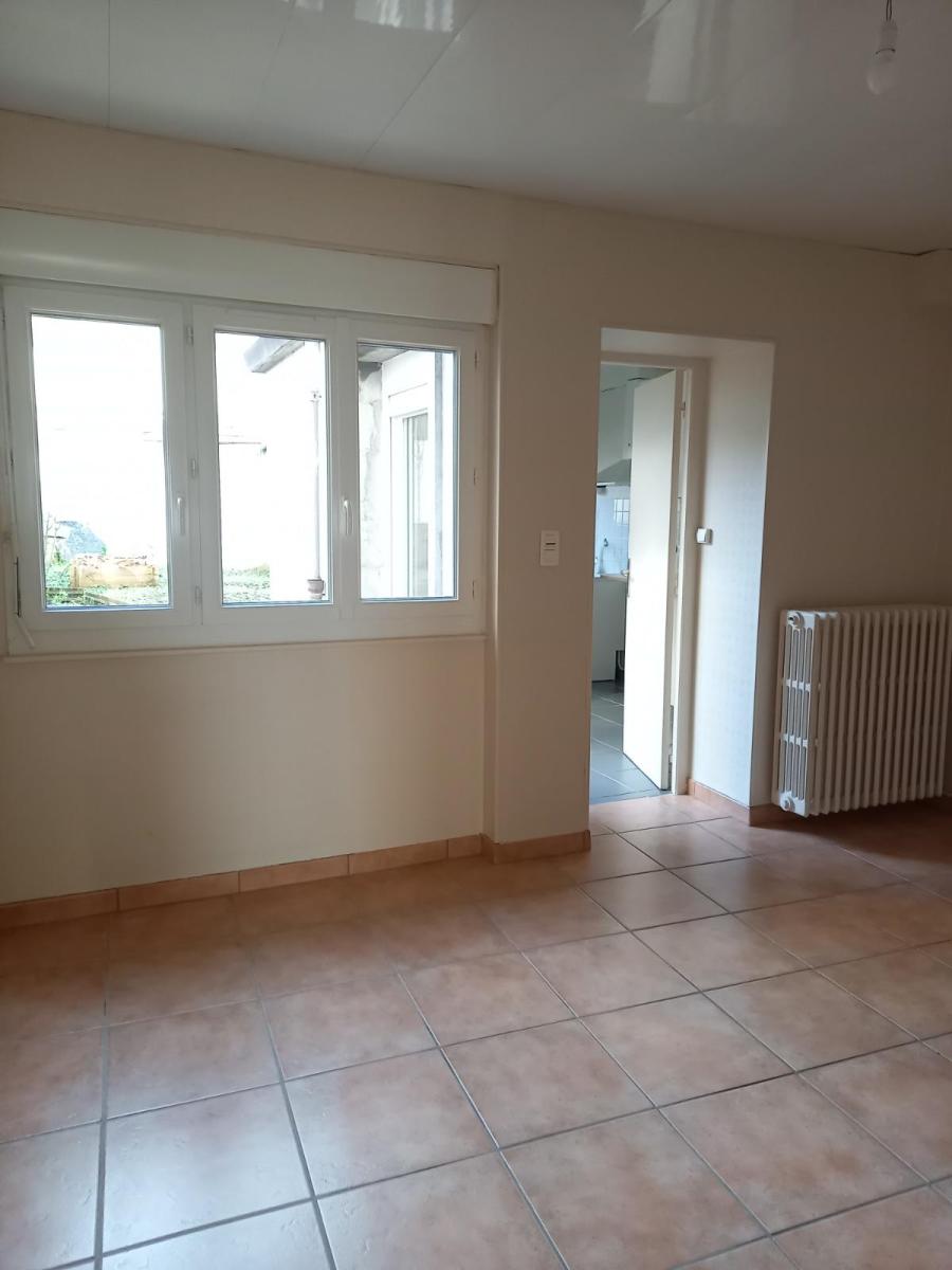 Maison d'habitation à louer composée d'un dégagement, séjour, cuisine aménagée, une cage d'escalier desservant deux chambres, salle d'eau, WC et véranda.