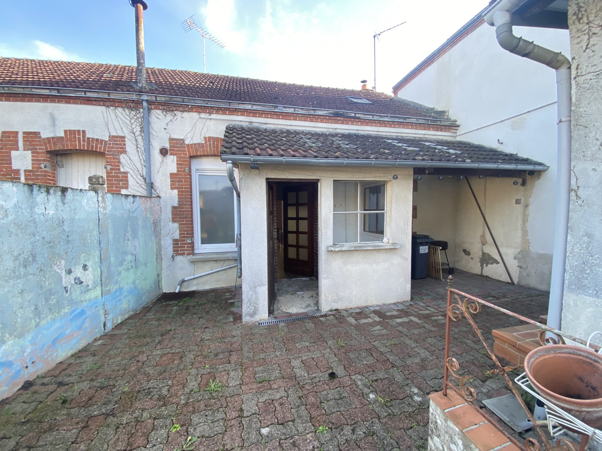 Bâtiment avec cave semi-enterrée.