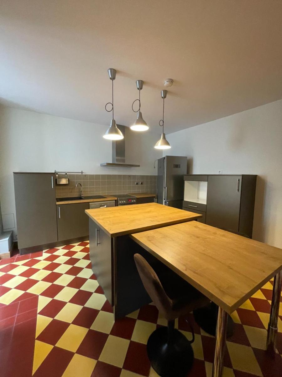 - au rez-de-chaussée : une entrée sur cuisine aménagée et équipée (hotte, plaque, four, réfrigérateur, lave-vaisselle), un salon/ séjour, une buanderie avec un wc.