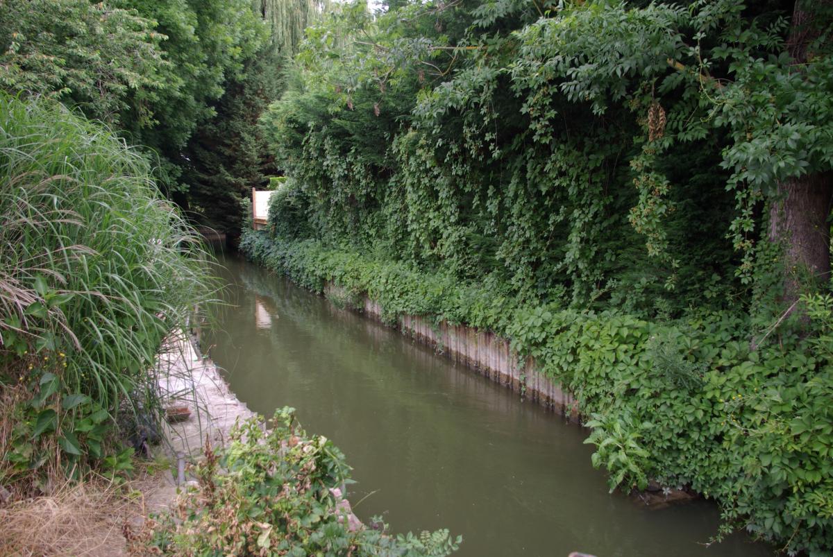 Un jardin avec terrasse donnant sur la petite Sensée. Idéalement située dans une rue très calme, avec facilité de parking, proche centre ville et proche Douai.