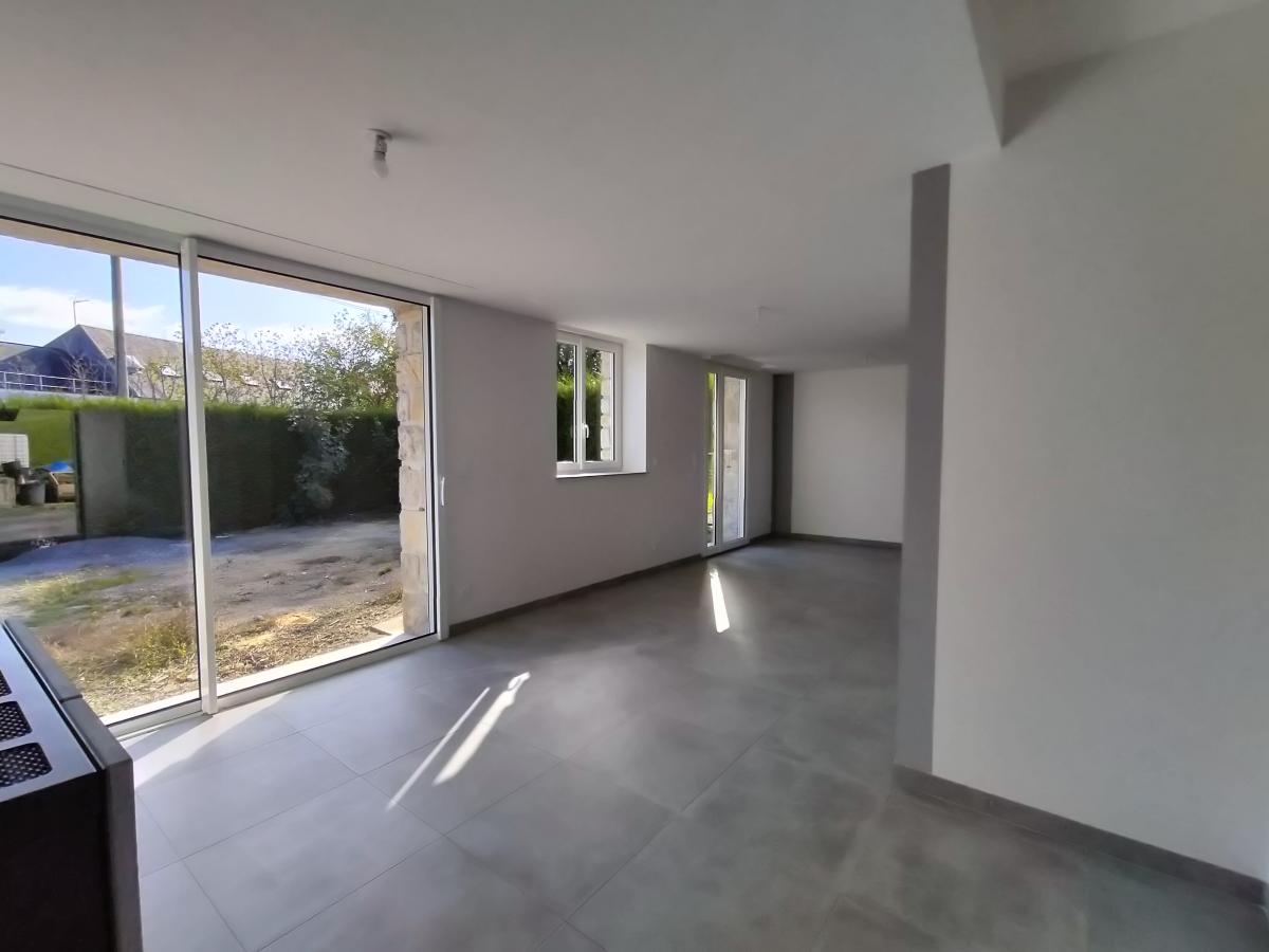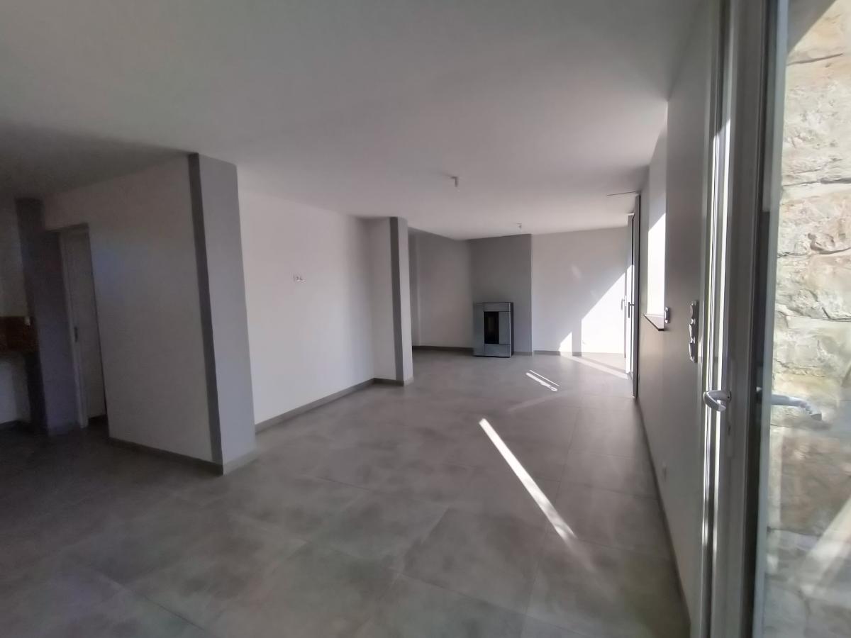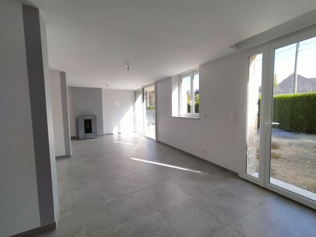 Cuisine ouverte, salon-séjour avec poêle à granule,