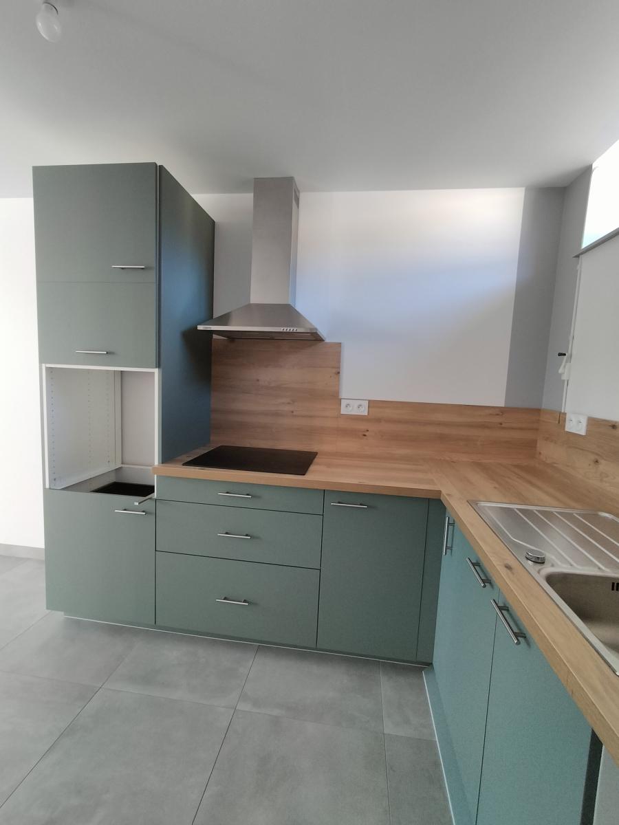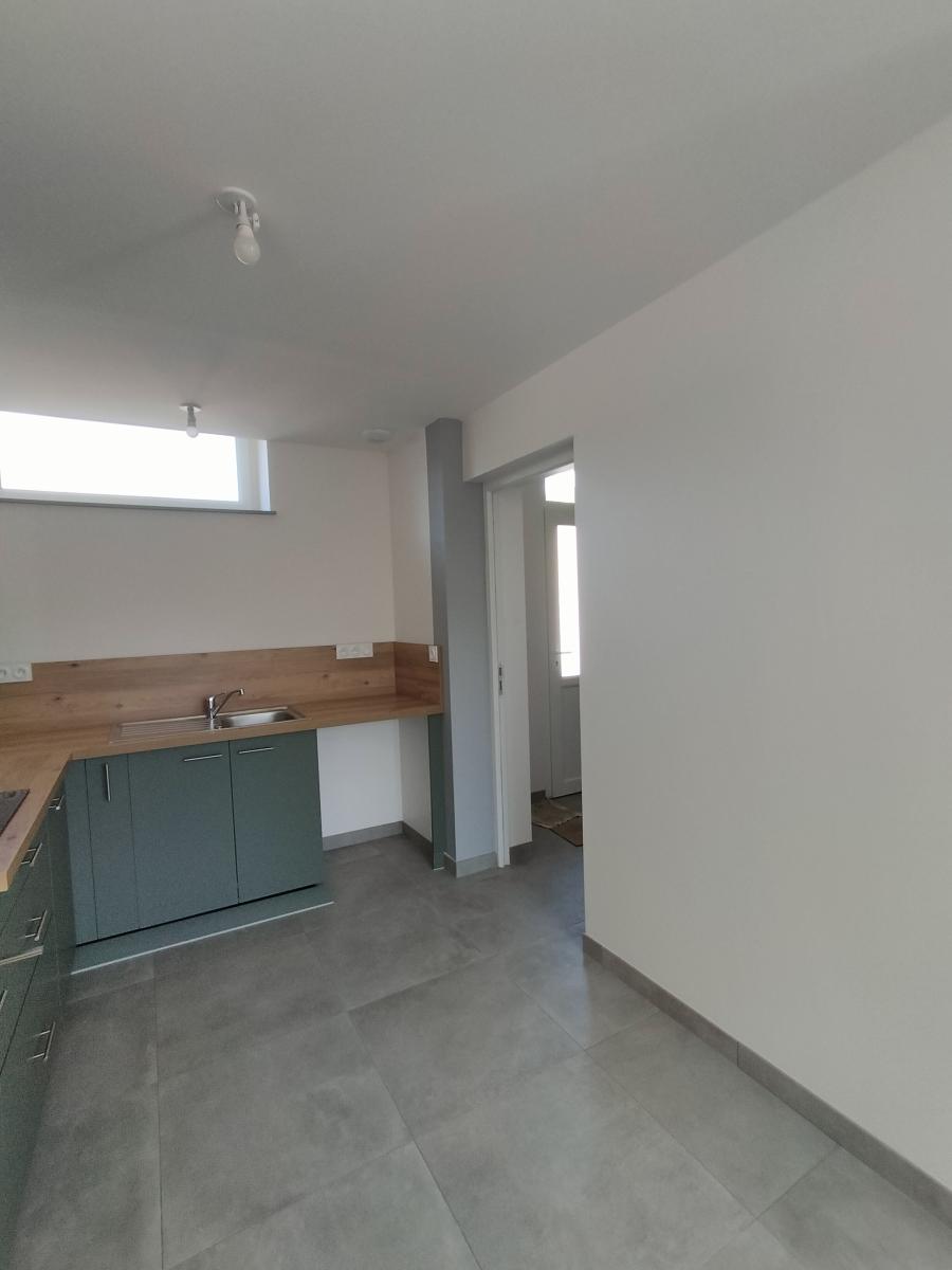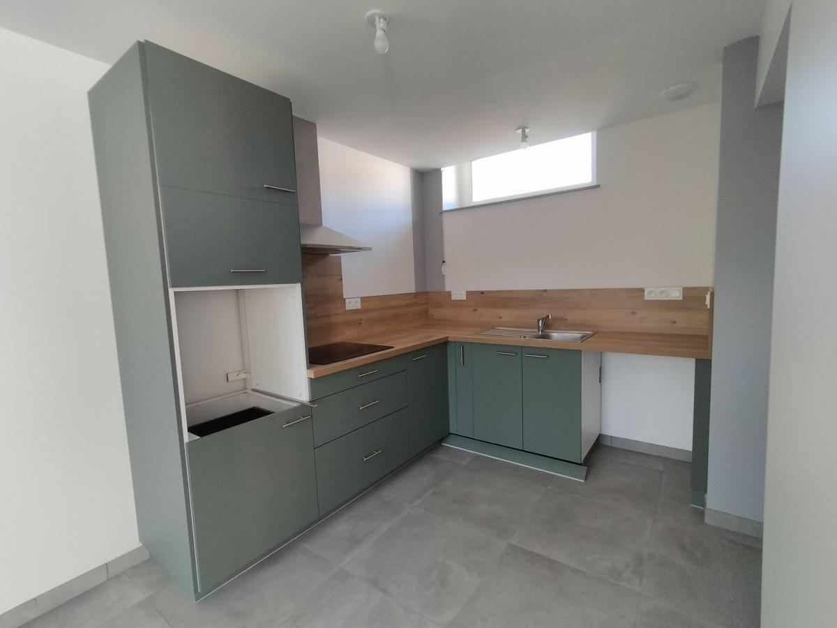 Cuisine ouverte, salon-séjour avec poêle à granule,