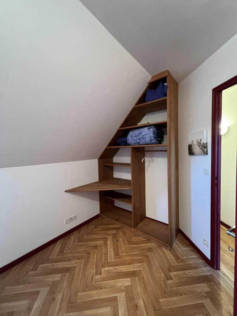 - A l'étage : trois chambres, coin bureau.