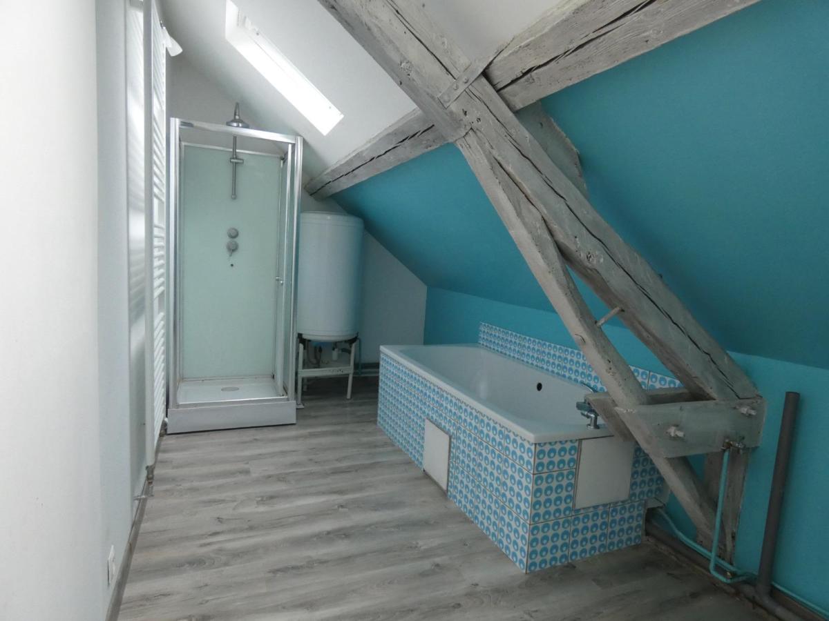 * Etage : palier, 2 chambres, salle de bains (douche, baignoire, WC).