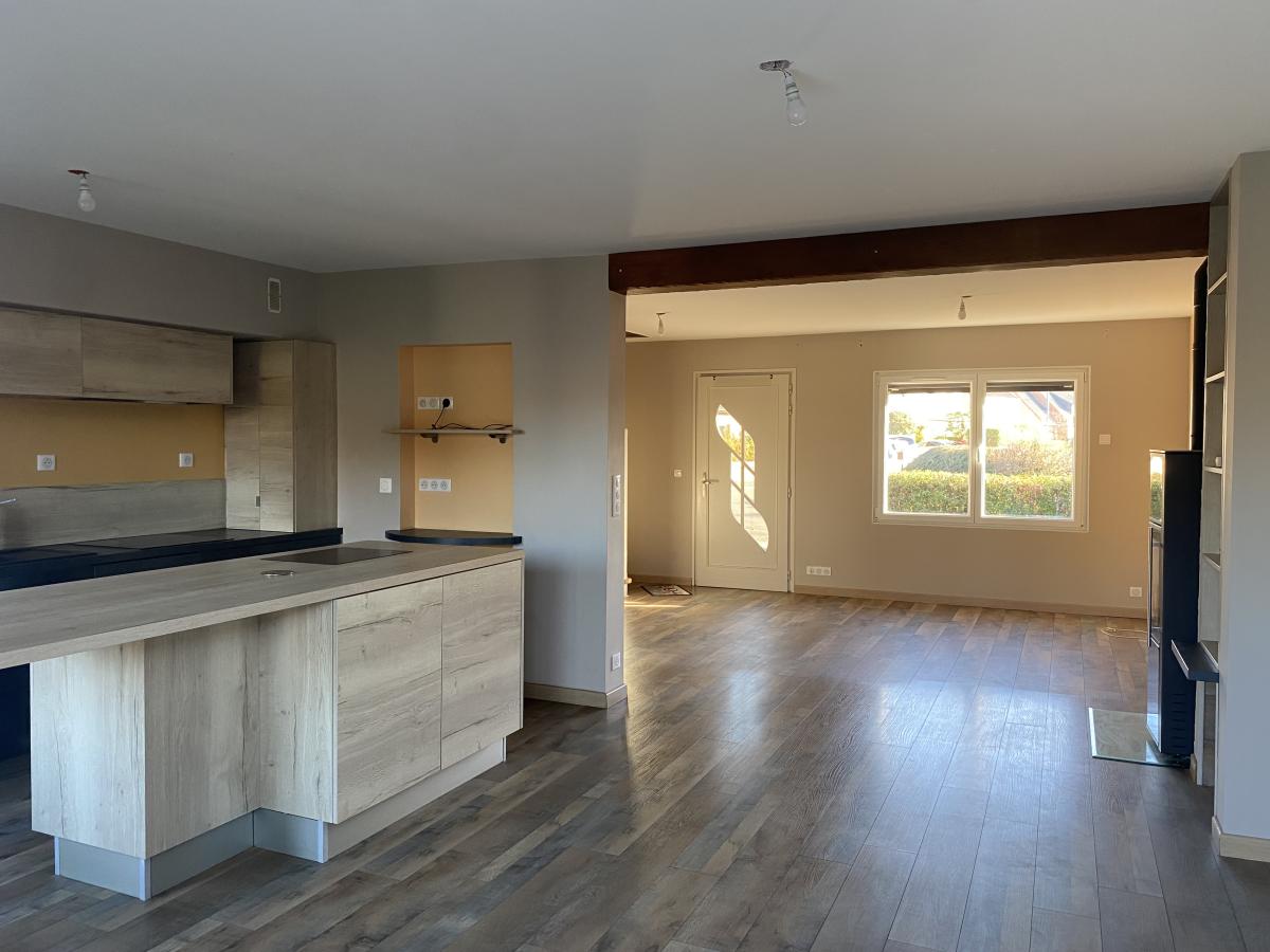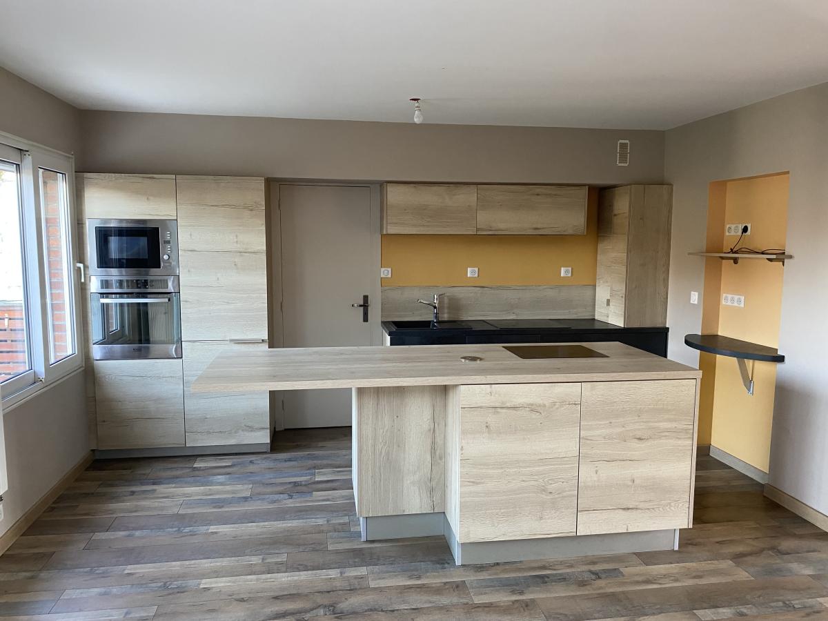 Provin, rue du Président Allendé, maison de lotissement; entrée, grande pièce de vie ouverte sur cuisine équipée, terrasse, jardin; à l'étage, 3 chambres, salle de bains avec vasque, baignoire, douche et wc. Chauffage gaz et poêle à bois. Loyer:950€, dépôt de garantie:950€, frais et état des lieux huissier:845€. Imperatif:3000€ CDI. Dispo. Contact:03.20.62.06.43.