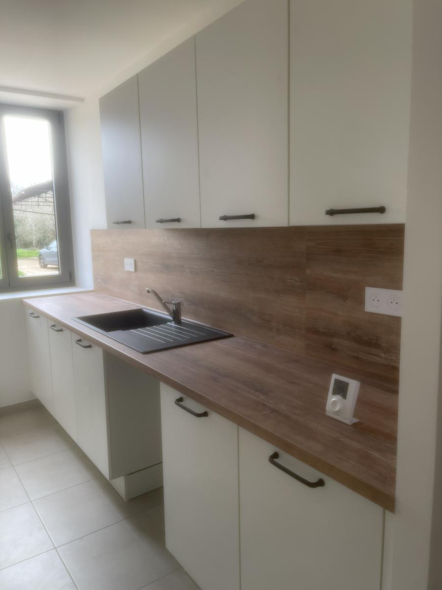 REUGNY - Dans hameau, jolie longère entièrement rénovée avec matériaux de qualité : grand séjour de 30 m², cuisine aménagée et équipée (meubles, plaque de cuisson, four , hotte), dégagement, deux chambres de 9 et 11 m² avec placard, salle de bains, wc-lave mains, troisième chambre de 10 m² avec placard, salle d'eau, local technique, buanderie.