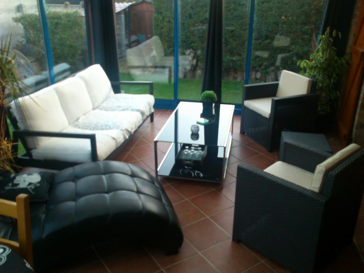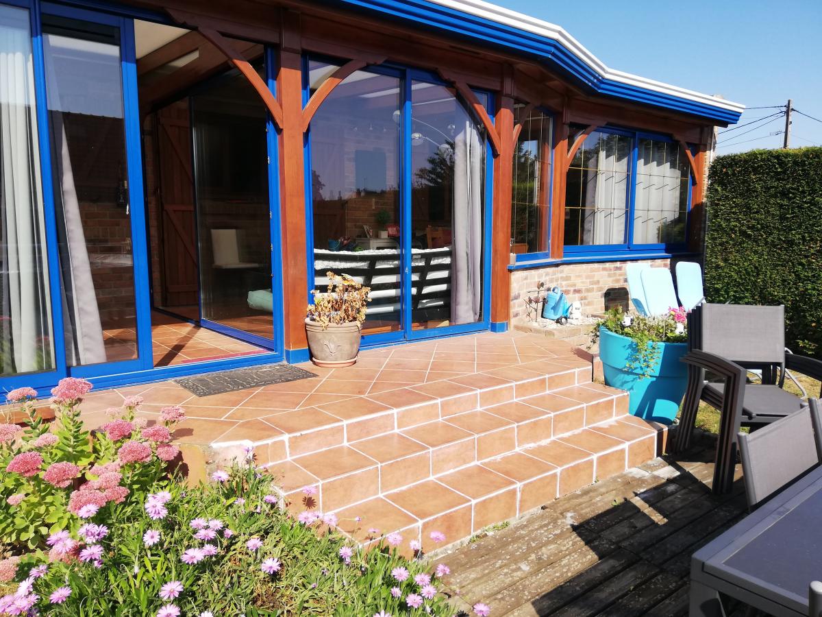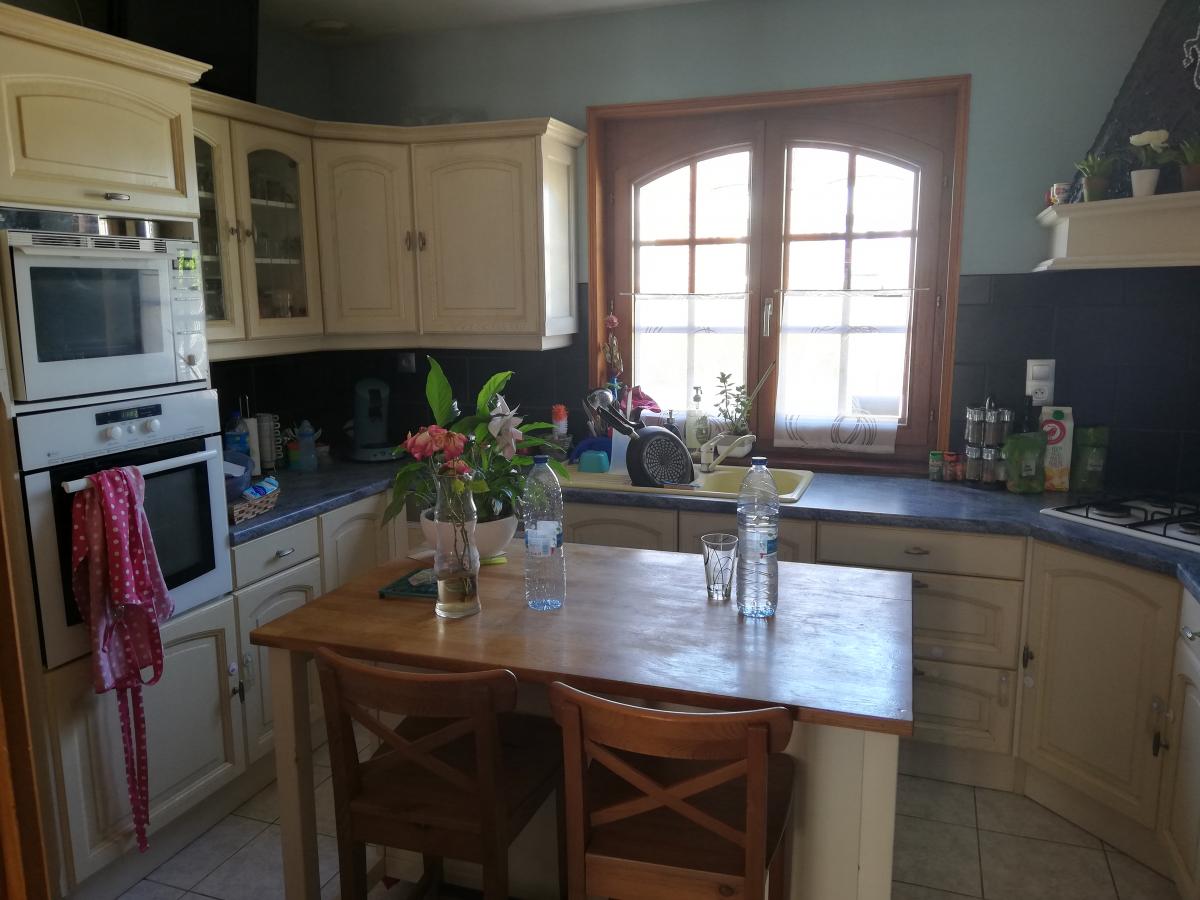 - entrée, salon-salle à manger avec cheminée feu de bois, cuisine équipée, salle de bains, W.C., 3 chambres, véranda et cellier.