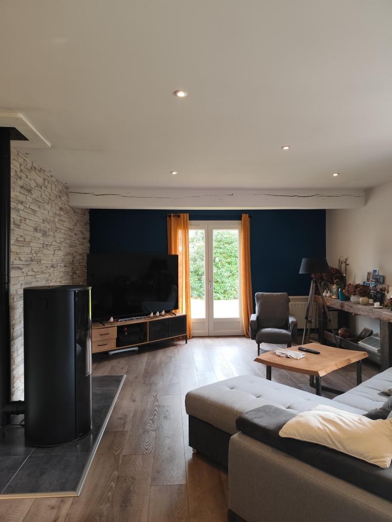 Belle maison comprenant: entrée grand salon salle à manger, cuisine équipée avec verrière donnant sur la salle à manger, 3 chambres, 1 salle d'eau neuve, cellier, pièce de jeux, grenier.