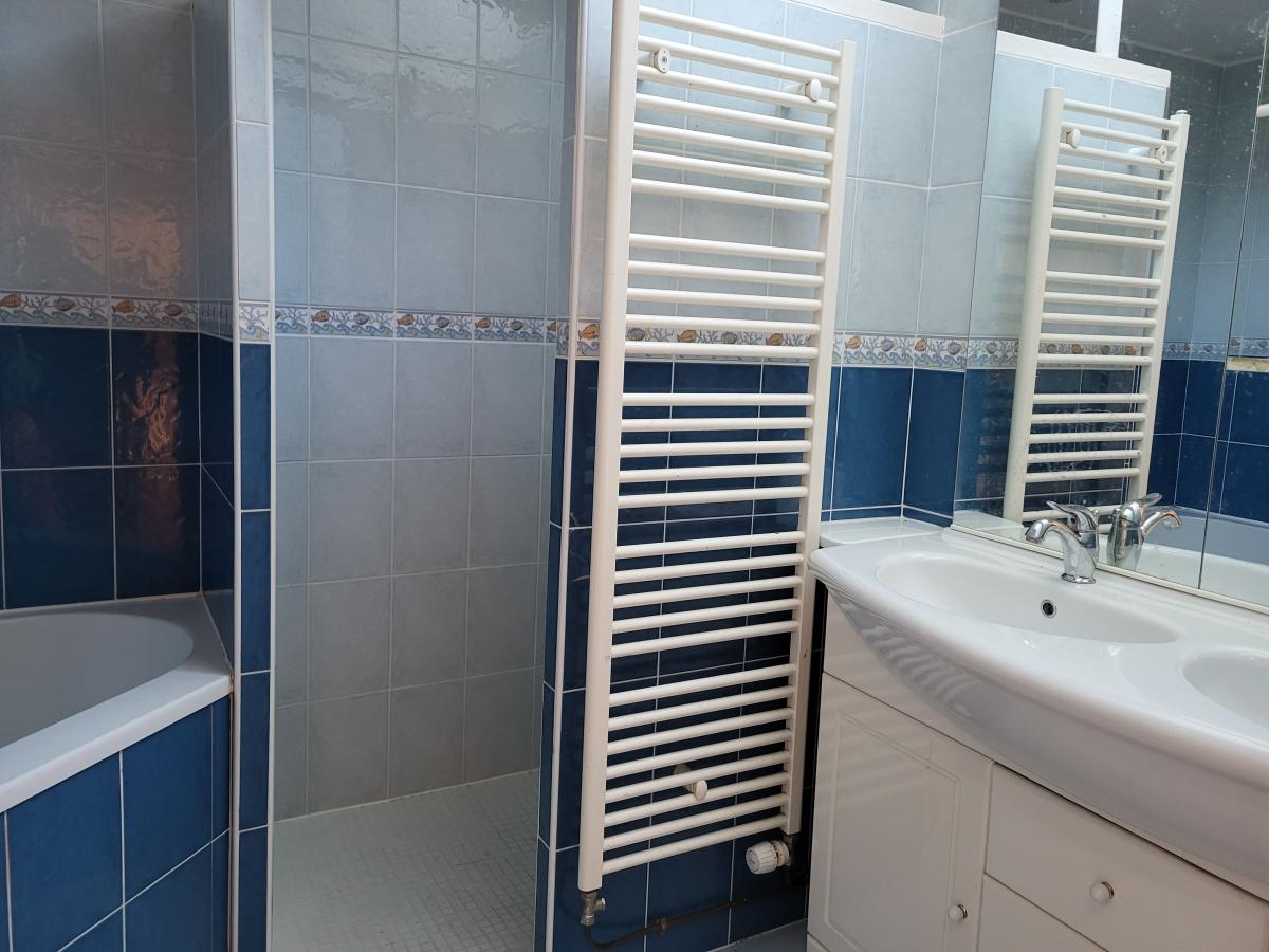A l'étage : 3 chambres, salle de bains (douche et baignoire), wc