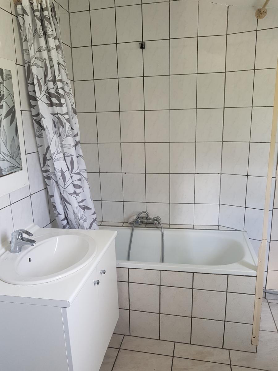 - Rez-de-chaussée : salon-séjour, cuisine non équipée, cellier, salle de bains (lavabo, baignoire, wc) ;