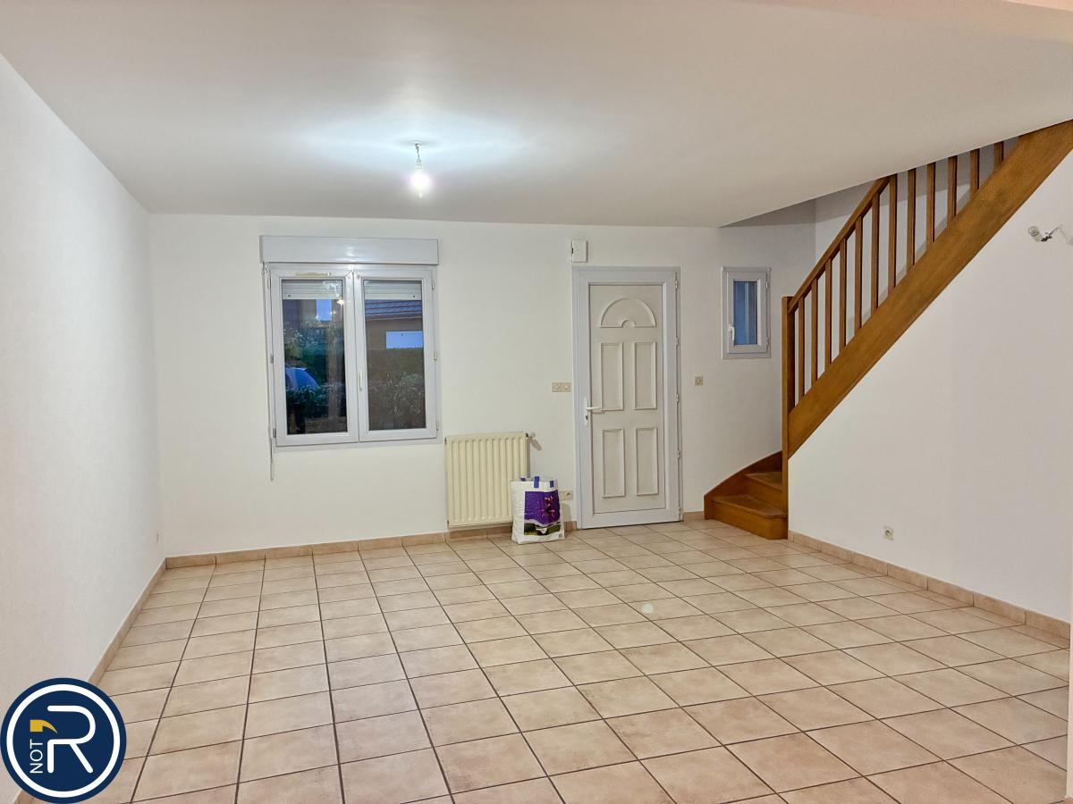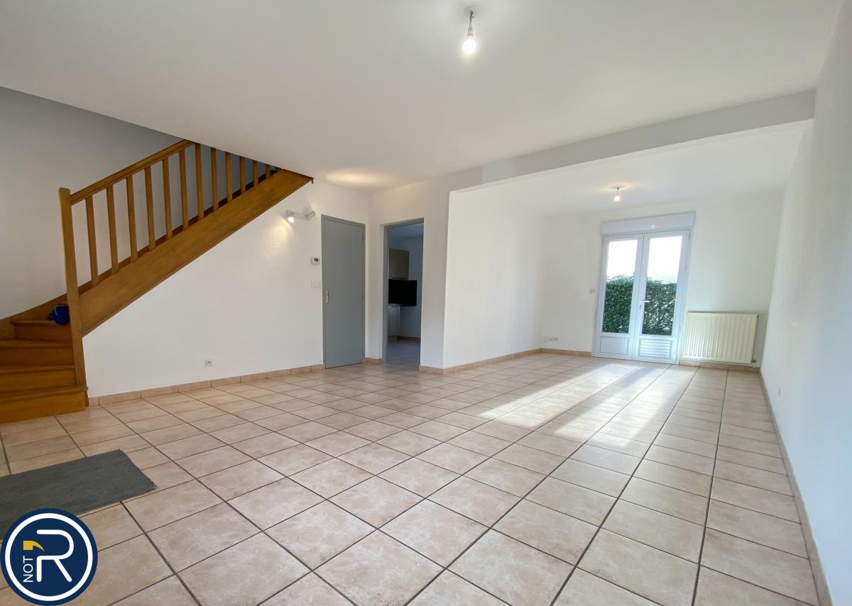 Un pavillon mitoyen d'un coté et comprenant au rez de chaussée : entrée sur séjour/salon, cuisine aménagée et équipée (four, plaque induction, hotte), W-C, garage.